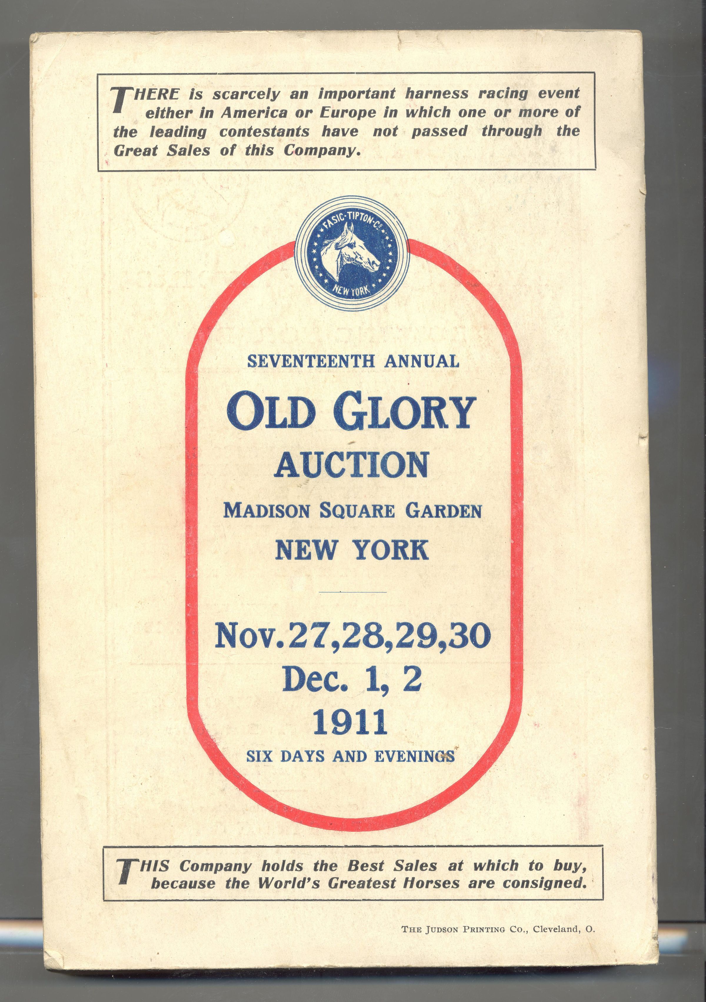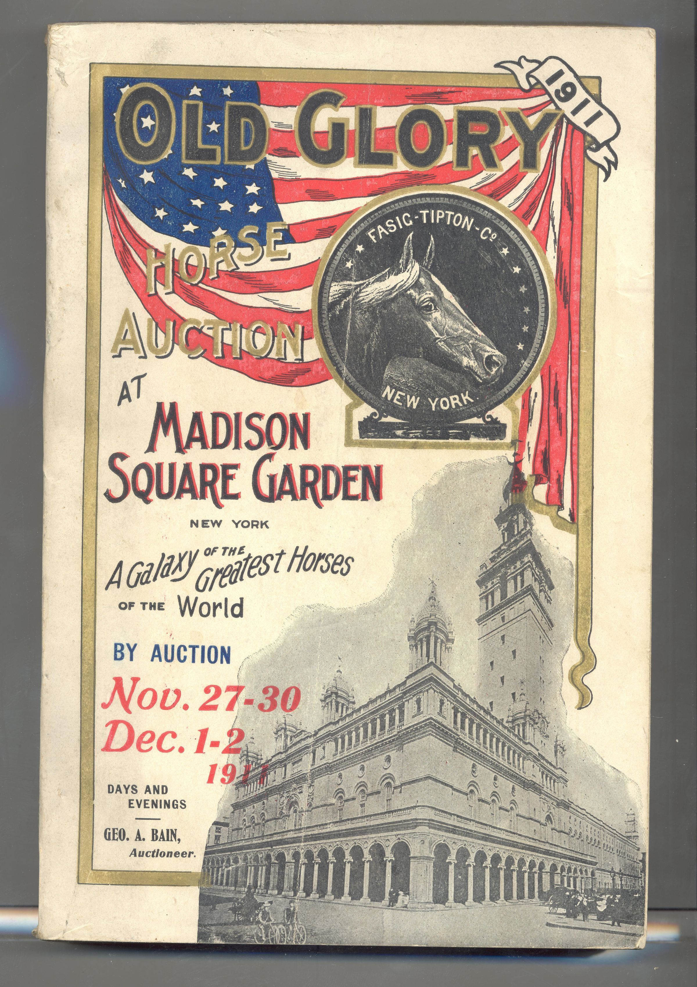 CAT, HORSE, 1911, NY. OLD GLORY HORSE AUCTION, "A GALAXY OF THE GREATEST HORSES OF THE WORLD" FASIG-TIPTON CO, GEORGE BAIN, AUCT. 6" X 9" X 1" PAGES NOT NUMBERED.Created By