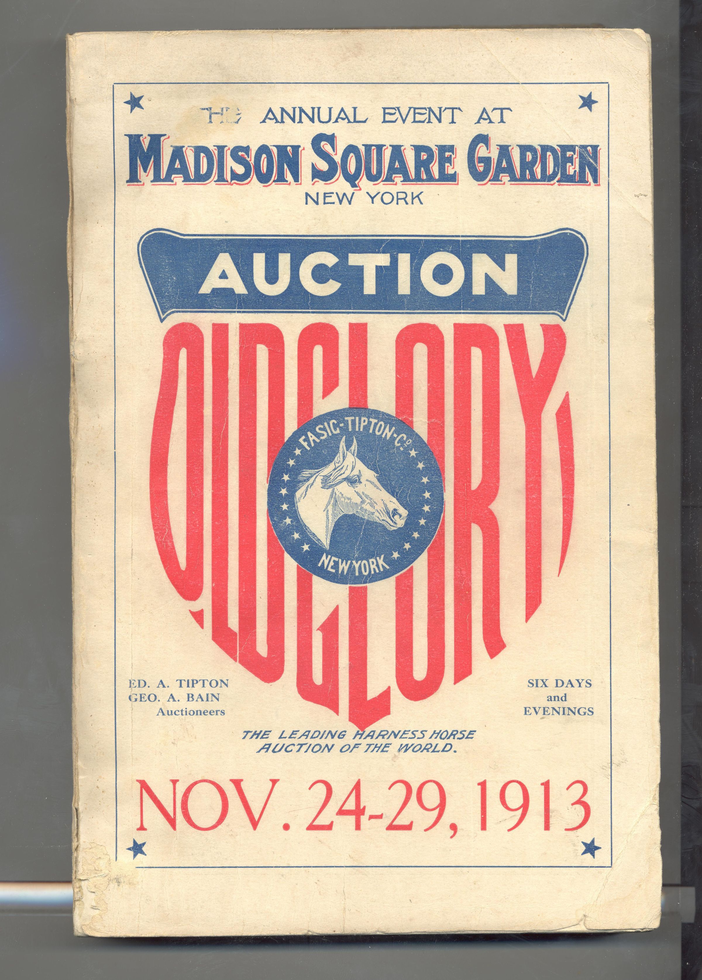 CAT, HORSE, 1913, NY. OLD GLORY HORSE AUCTION, "THE LEADING HARNESS HORSE AUCTION OF THE WORLD" FASIG-TIPTON CO, ED TIPTON, GEORGE BAIN, AUCTIONEERS. 6" X 9" X 1" PAGES NOT NUMBERED.Created By