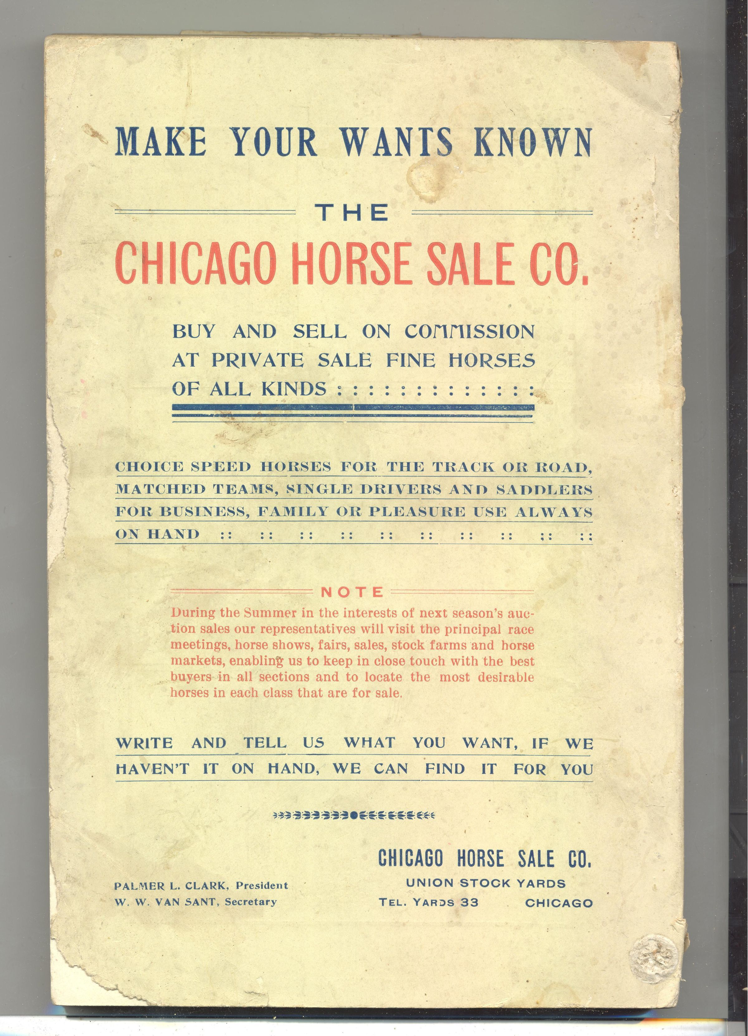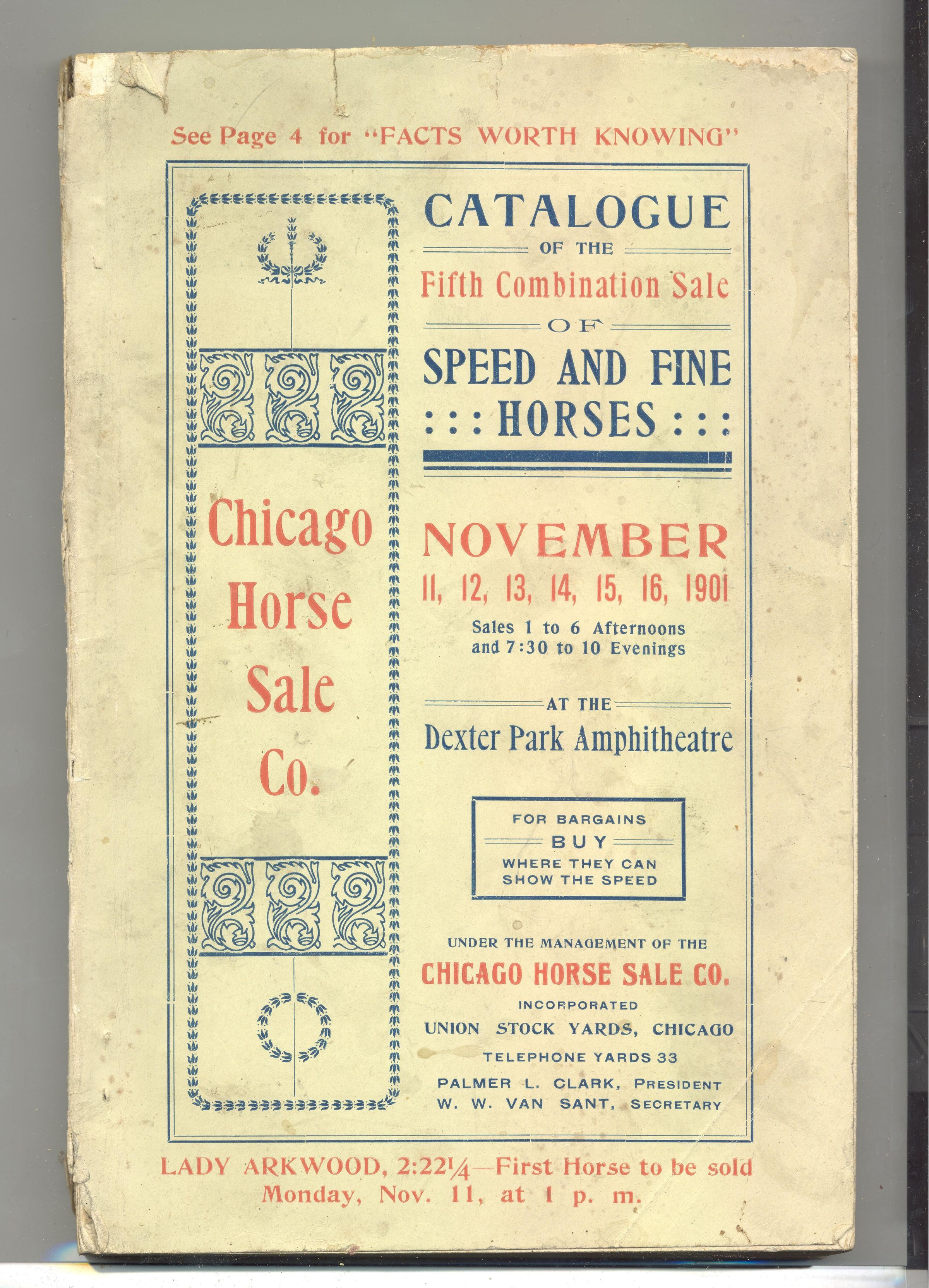CAT, HORSE, 1901, IL. 5TH COMBINATION SALE OF SPEED AND FINE HORSES. CHICAGO HORSE SALE CO. 303 PP. 5 1/2" X 8 1/2"Created By