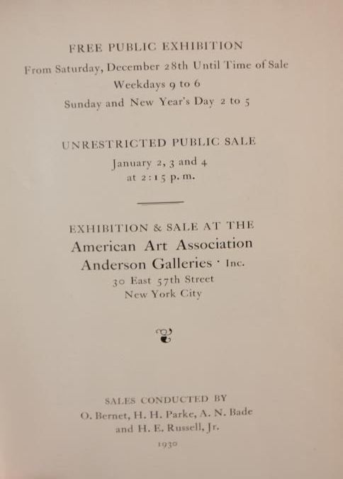 CAT, ART, 1934, NY. SALE #4109, COLLECTION OF FURNITURE, PAINTINGS & WORKS OF ART. AMERICAN ART ASSOC, ANDERSON GALLERIES. PARKE, BERNET, BADE, RUSSELL, AUCTS. 199 PP. ILLUS. 7 1/2" X 10 1/2"Created By