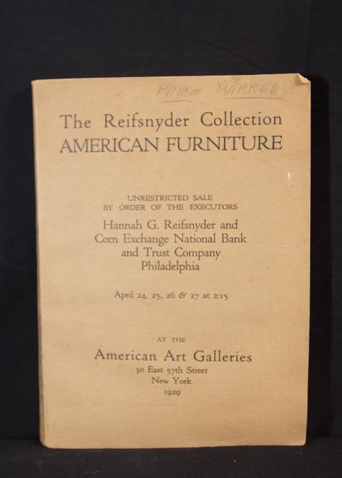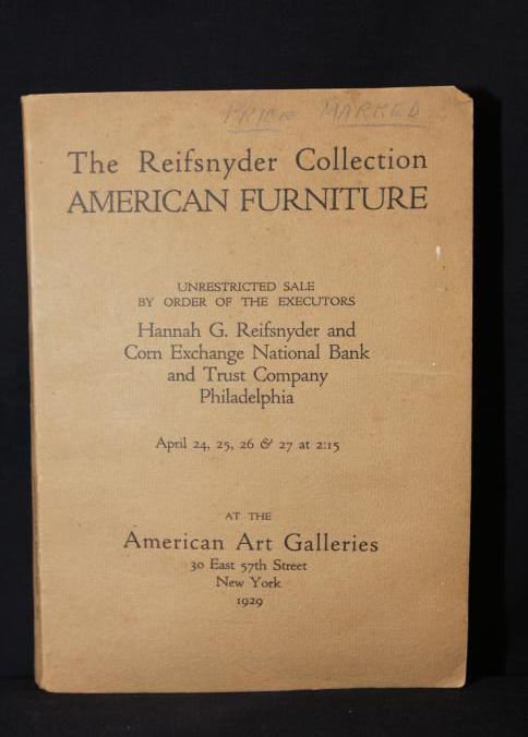 CAT, FURNITURE, 1929, NY. THE REIFSNYDER COLLECTION OF AMERICAN FURNITURE. AMERICAN ART GALLERIES. BERNET, PARKE, RUSSELL, AUCTS. PRICES MARKED. 157 PP. 6 1/4" X 9 1/4"Created By