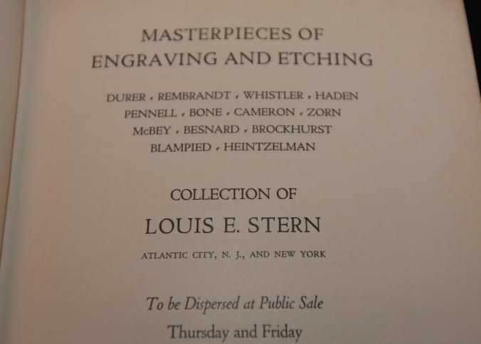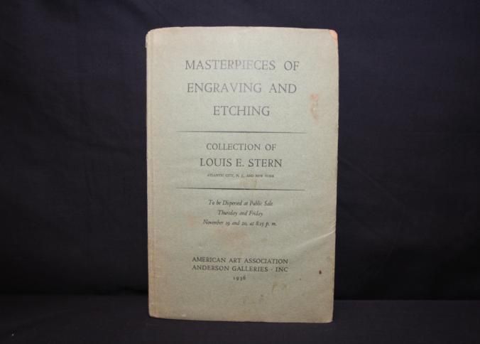 CAT, ART, 1936, NY. BOUND BOOK, HARDCOVER. MASTERPIECES OF ENGRAVING AND ETCHING, COLLECTION OF LOUIS STERN. AMERICAN ART ASSOC, ANDERSON GALLERIES. PARKE, BERNET, RUSSELL, AUCTIONEERS. INCL WORKS OF DURER, REMBRANDT, WHISTLER, HADEN, PENNELL, BONE, CAMERON, ZORN, MCBEY, BESNARD, BROCKHURST, BLAMPIED, HEINTZELMAN. 146 PP. 7 1/2" X 10 3/4"Created By