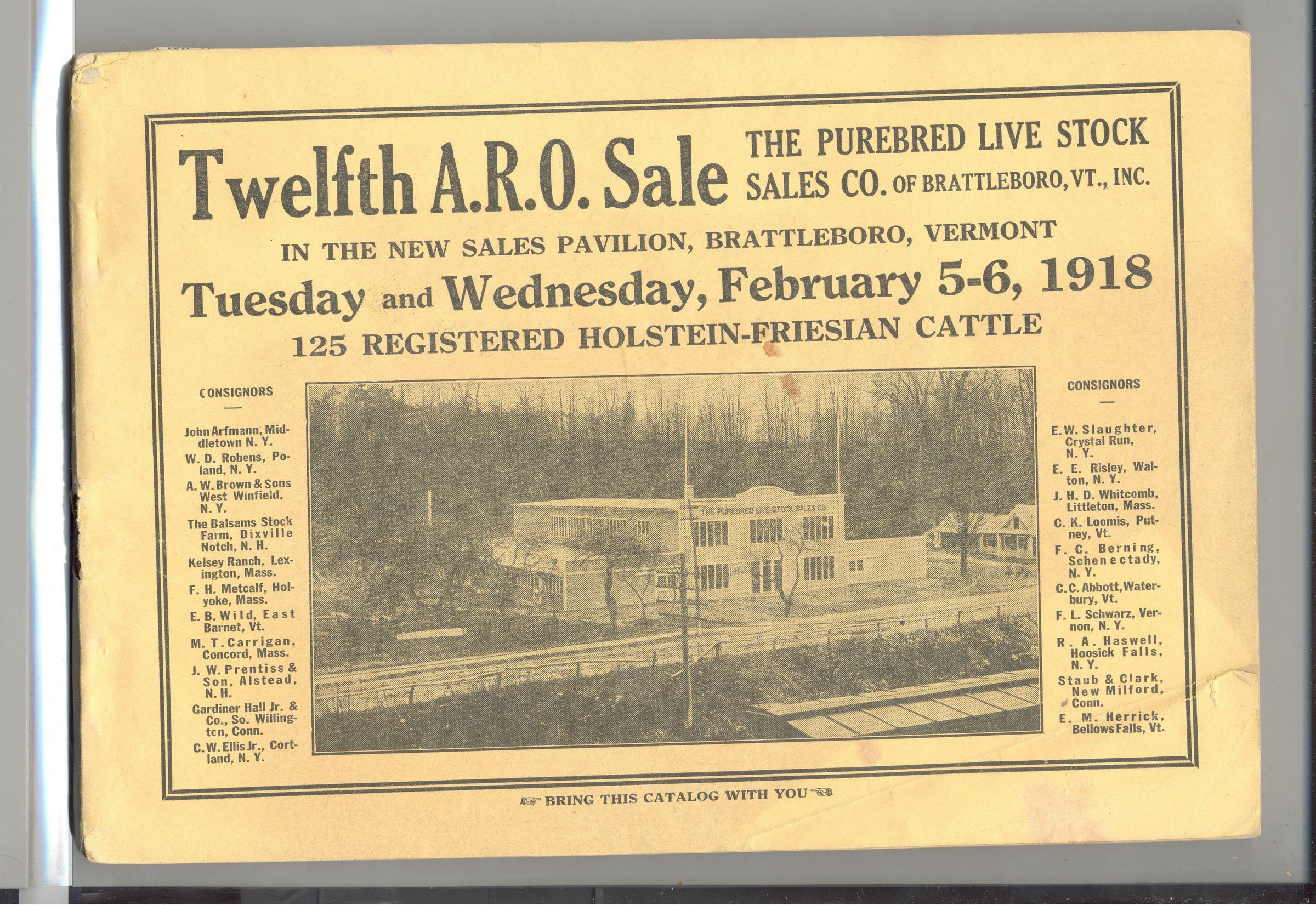 CAT, CATTLE, 1918, VT. 12TH ARO SALE, PUREBRED LIVE STOCK SALE CO. 125 REGISTERED HOLSTEIN-FRIESIANS. 158 PP. 8 1/2" X 6"Created By