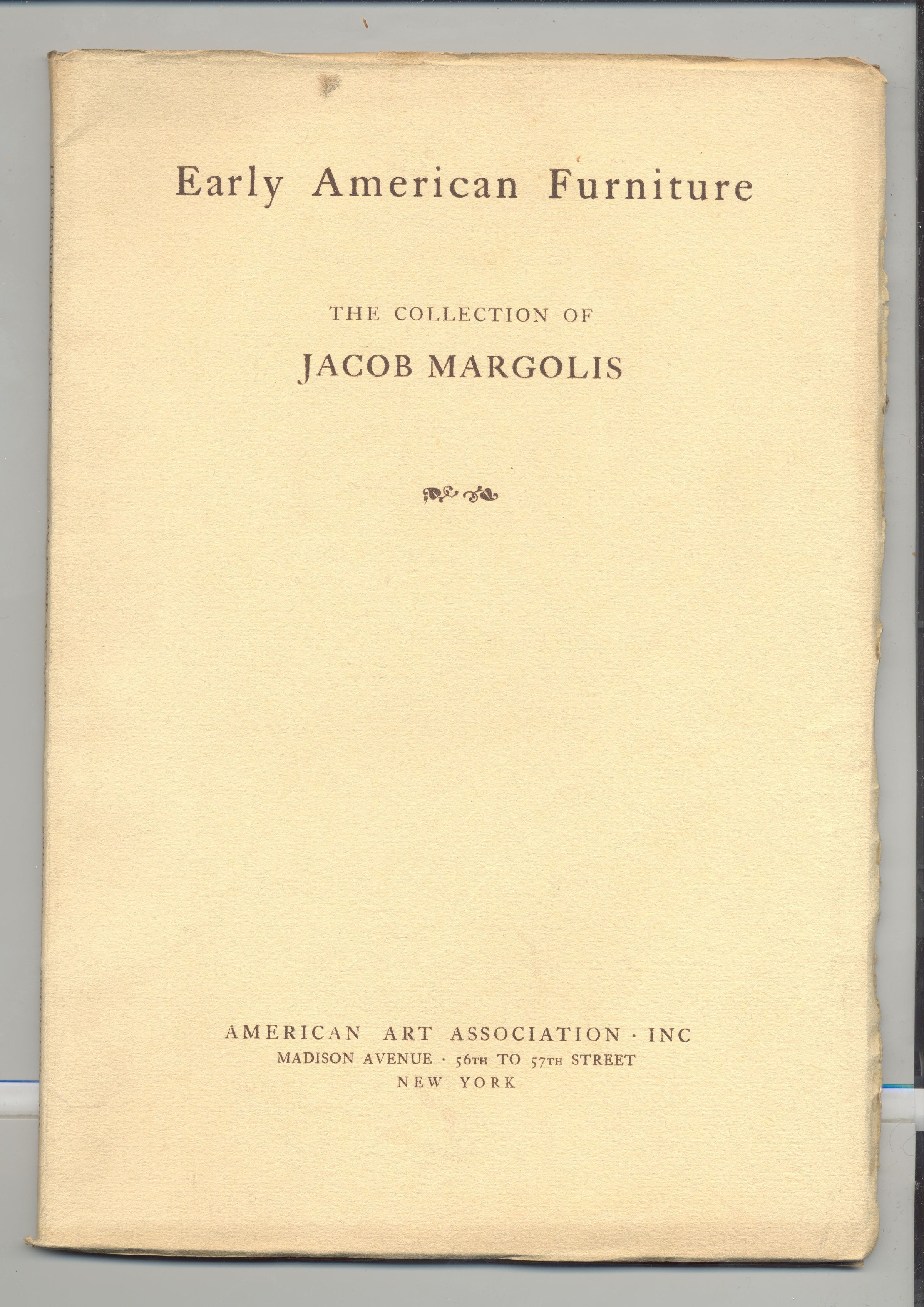 CAT, EARLY AMERICAN FURNITURE, 1926, NY. JACOB MARGOLIS COLLECTION. AMERICAN ART ASSOCIATION. PRICES WRITTEN, B/W PHOTOS, 86 PP. 7" X 10"Created By