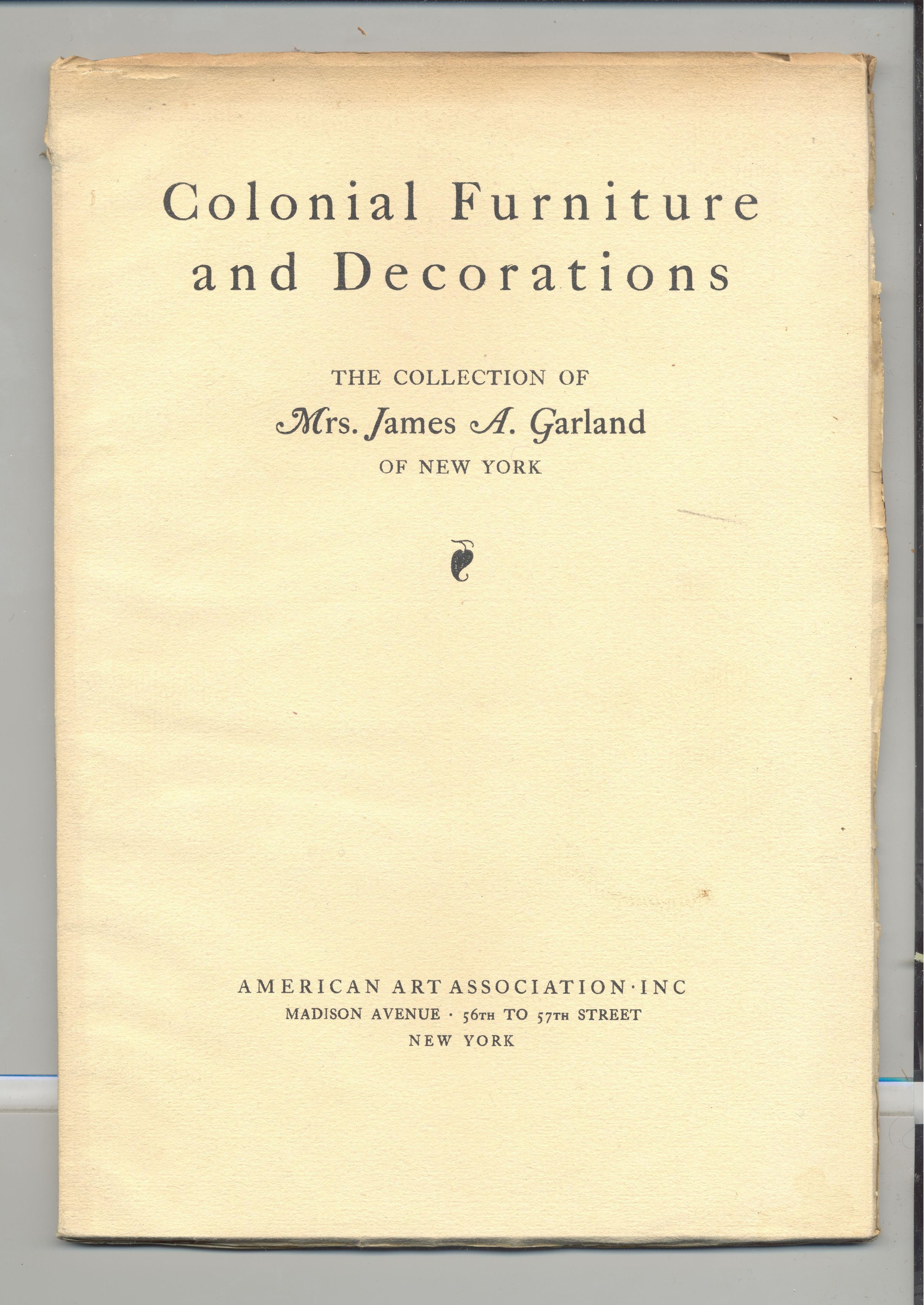 CAT, COLONIAL FURNITURE AND DECORATIONS, 1927, NY. GARLAND COLLECTION. AMERICAN ART ASSOCIATION. B/W PHOTOS, 79 PP. 7" X 10"Created By