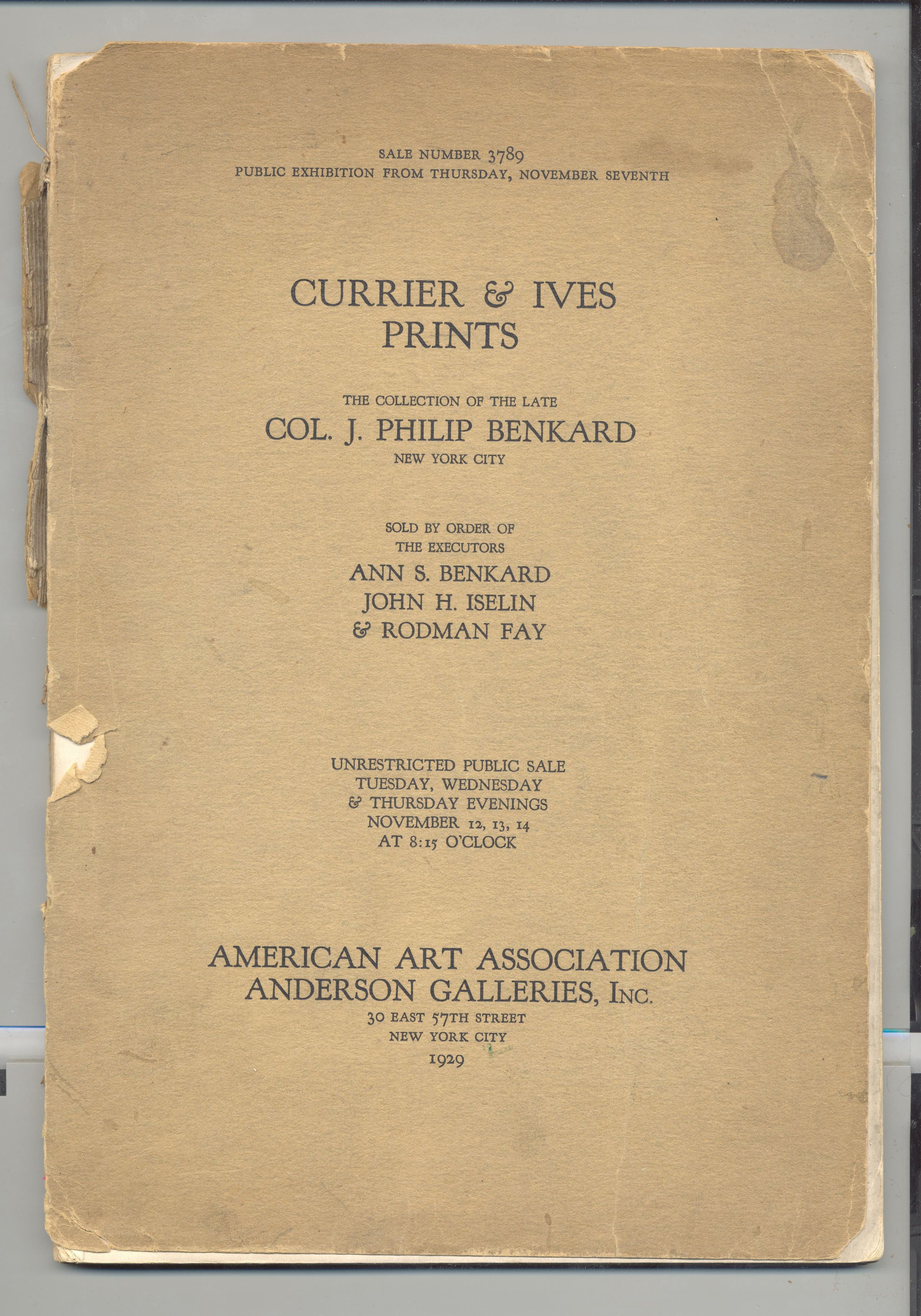 CAT, ART, 1929, NY. CURRIER & IVES PRINTS, AMERICAN ART ASSOC, ANDERSON GALLERIES. BERNET, PARKE, BADE, RUSSELL AUCTS. ILLUS, PRICED. 76 PP. 7 1/4" X 10 1/2"Created By