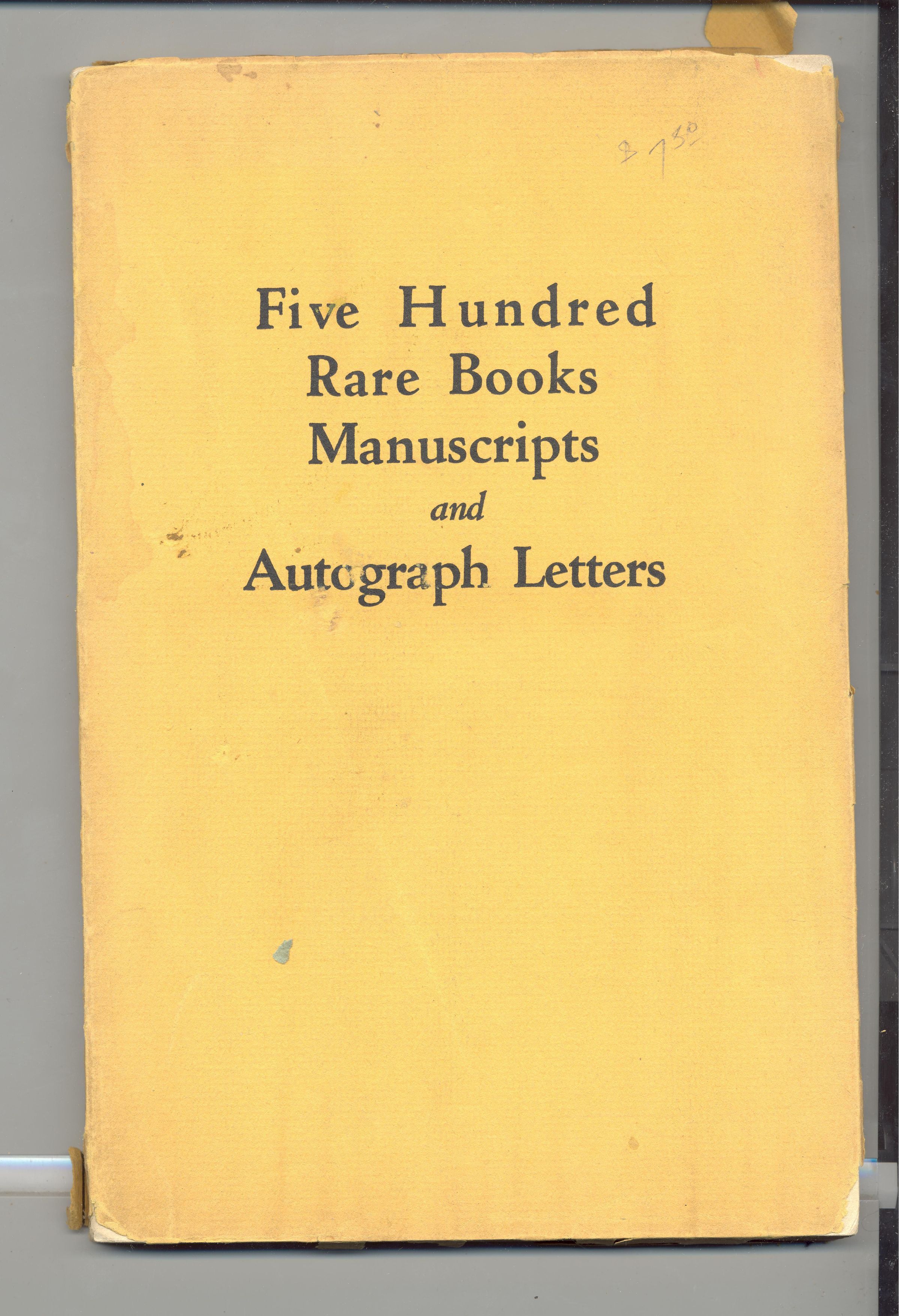 CAT, BOOKS, 1936, NY. 500 RARE BOOKS, MANUSCRIPTS & AUTOGRAPH LETTERS. 125 PP. 6" X 9 1/4"