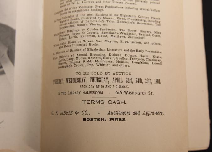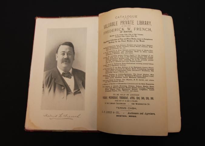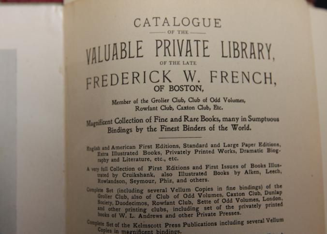 CAT, BOOKS, 1901, MA. PRIVATE LIBRARY OF FREDERICK W. FRENCH OF BOSTON, MA. C.F. LIBBIE & CO, AUCTS. B/W ILLUS, BINDING ROUGH. SOME PRICES, 237 PP. 6 1/4" X 9 3/4"Created By