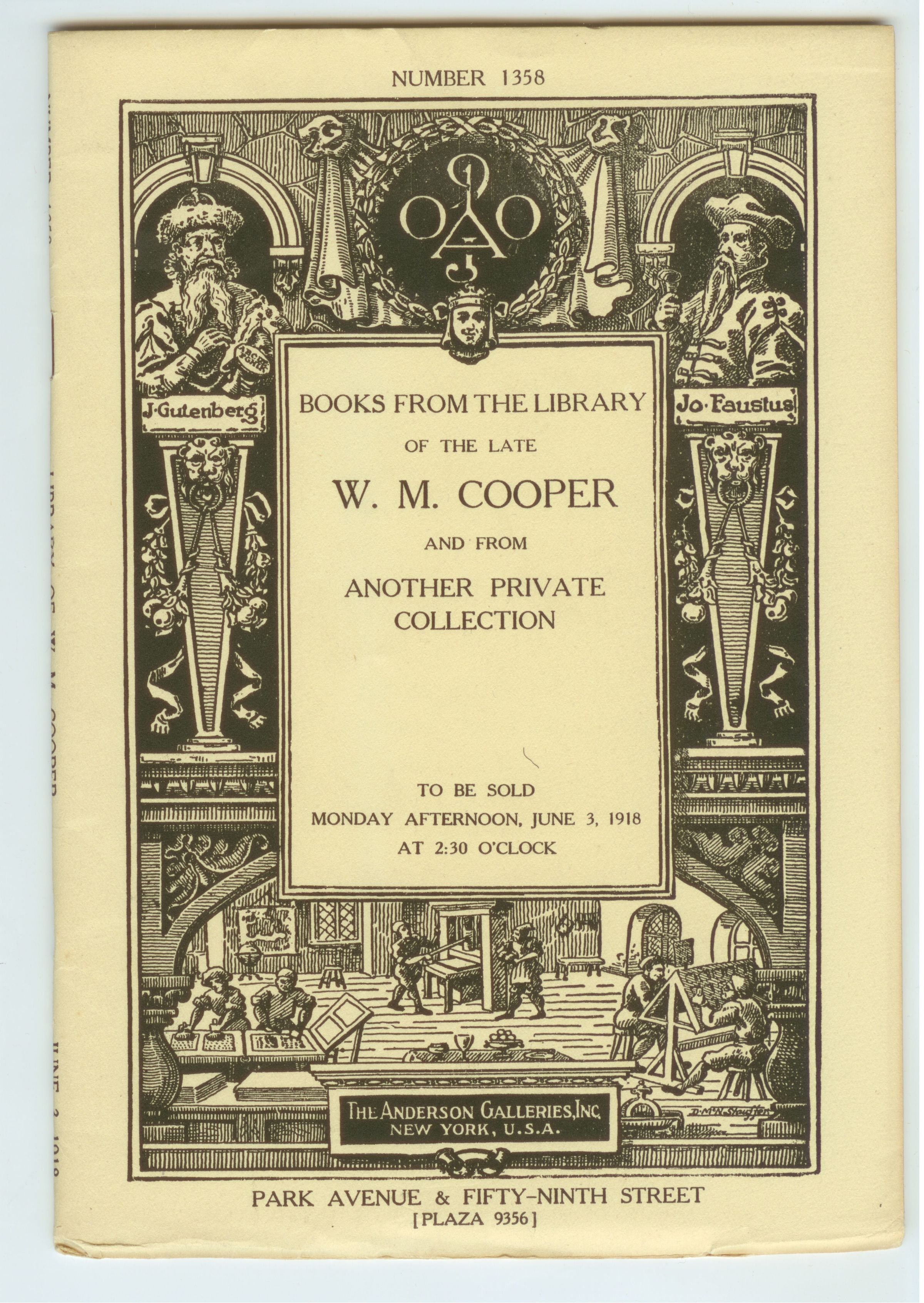 CAT, BOOKS, 1918, NY. SALE 1358, LIBRARY OF LATE W.M. COOPER AND OTHERS. ANDERSON GALLERIES, INC. 56 PP. 5 3/4" X 8 1/4"Created By