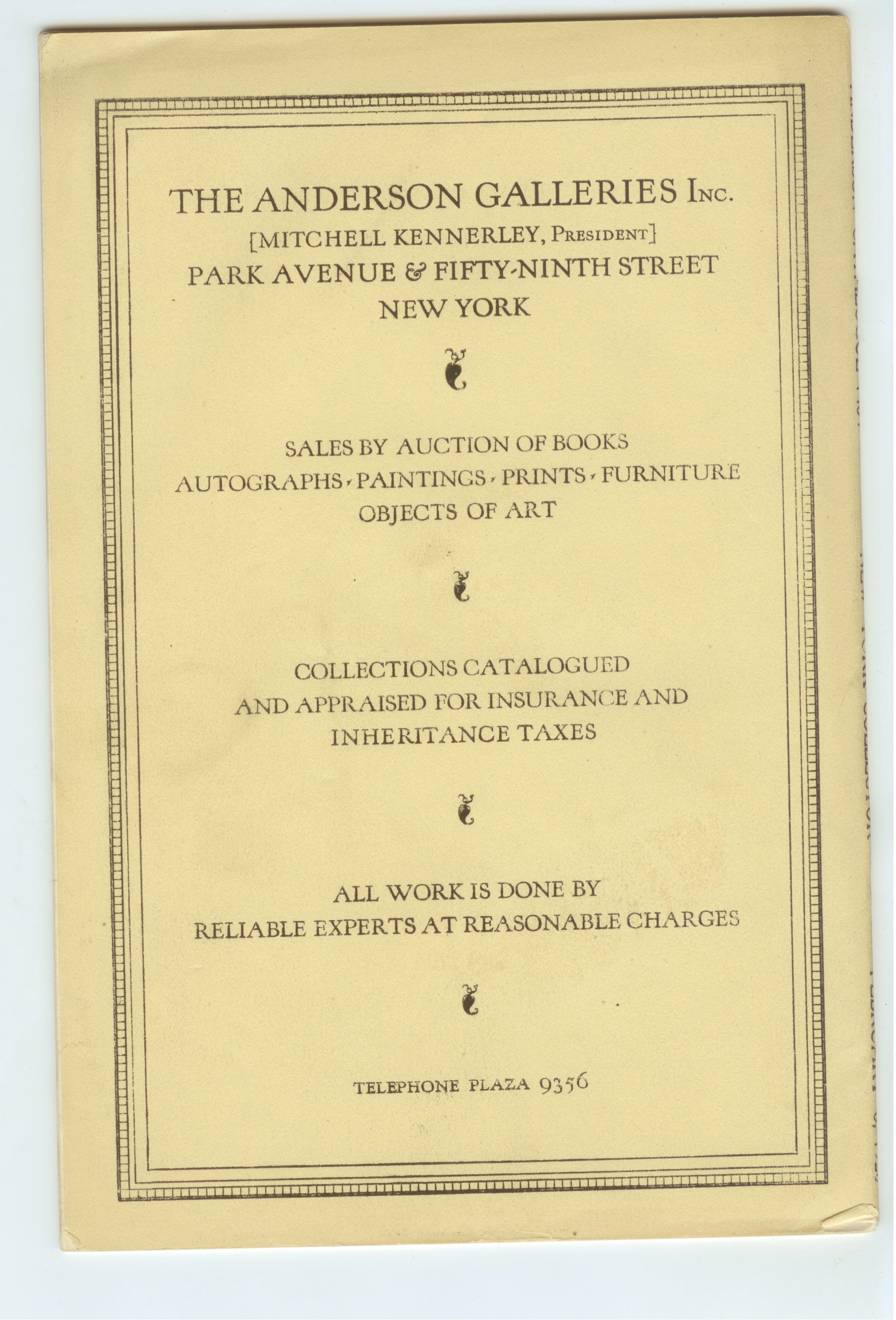 CAT, BOOKS, 1920, NY. SALE 1464, RARITIES IN ENGLISH LITERATURE AND IN OTHER LANGUAGES. ANDERSON GALLERIES. 28 PP, 6" X 9"Created By