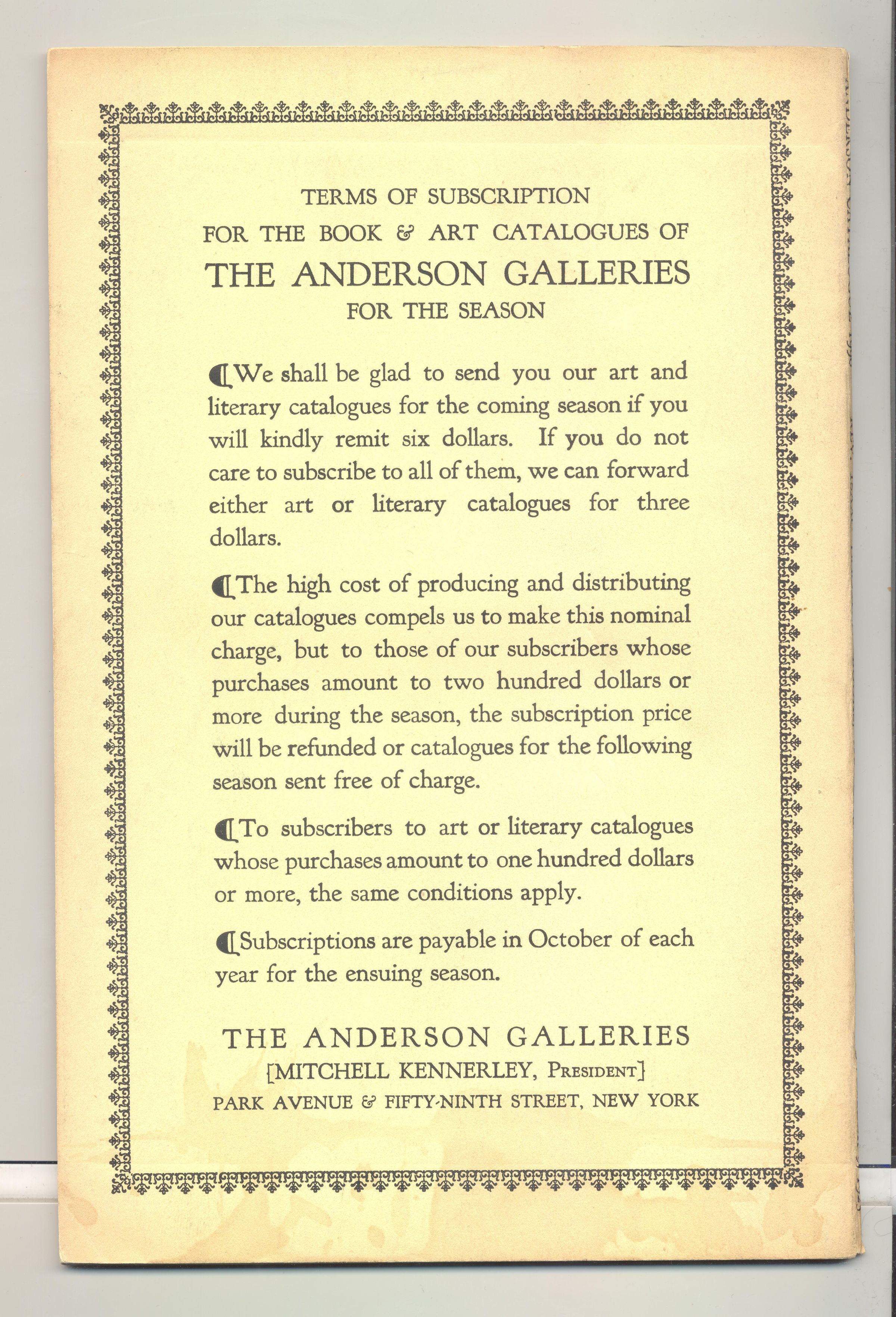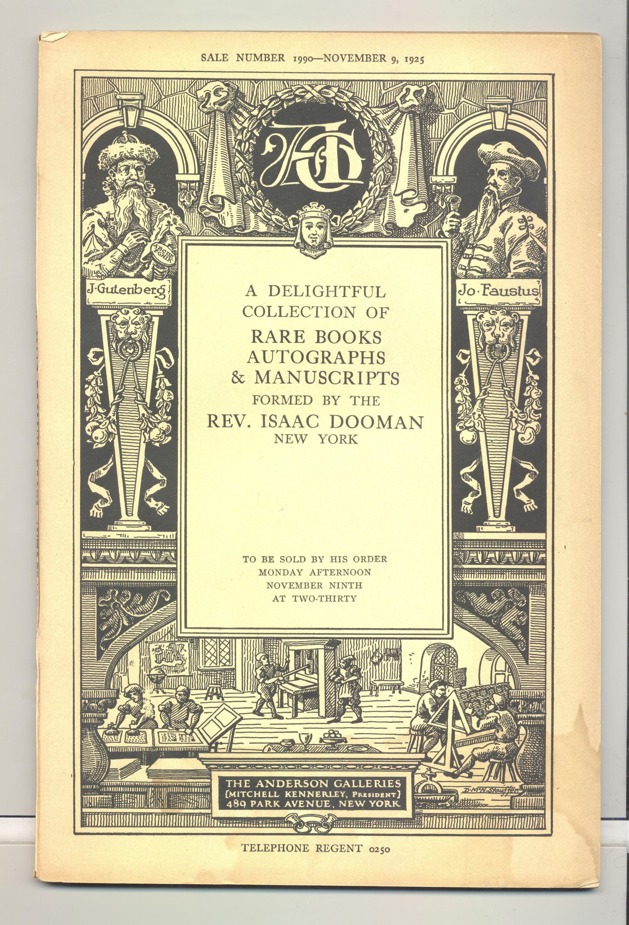 CAT, BOOKS, 1925, NY. RARE BOOKS, AUTOGRAPHS & MANUSCRIPTS, SALE #1990. ANDERSON GALLERIES, 46 PP. 6" X 9 1/4"Created By