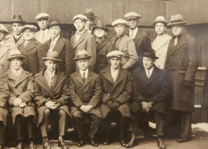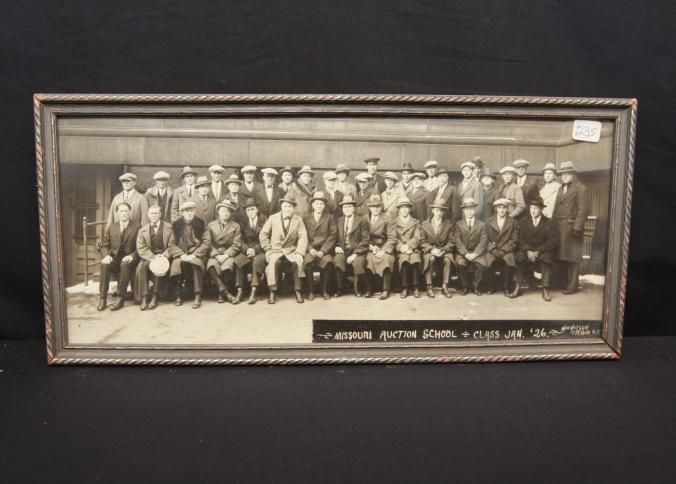 FR. PHOTO 1926 MISSOURI AUCTION SCHOOL CLASS. 6X15" SHOWING 40 MEN ALL BUT ONE WITH HATS, ALL WITH TIES, JACKETS AND COATS.Created By