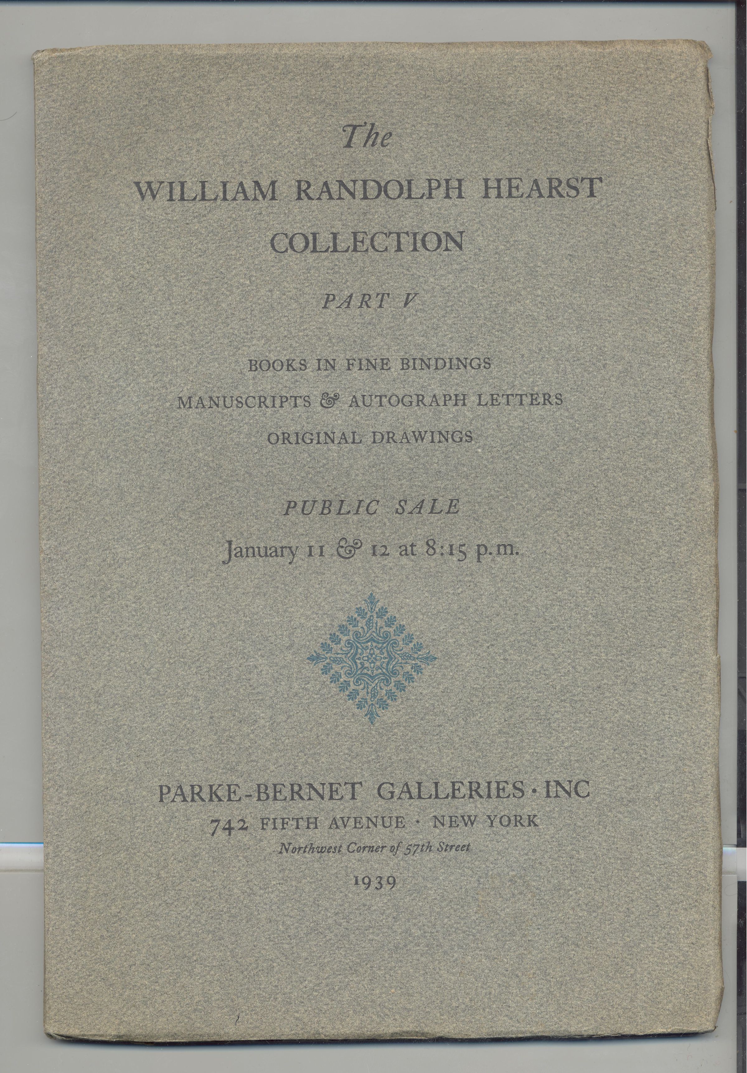 CAT, BOOKS, 1939, NY. WILLIAM RANDOLPH HEARST COLLECTION, PART V. PARKE-BERNET GALLERIES, 78 PP. 7 1/4" X 10 1/2"Created By