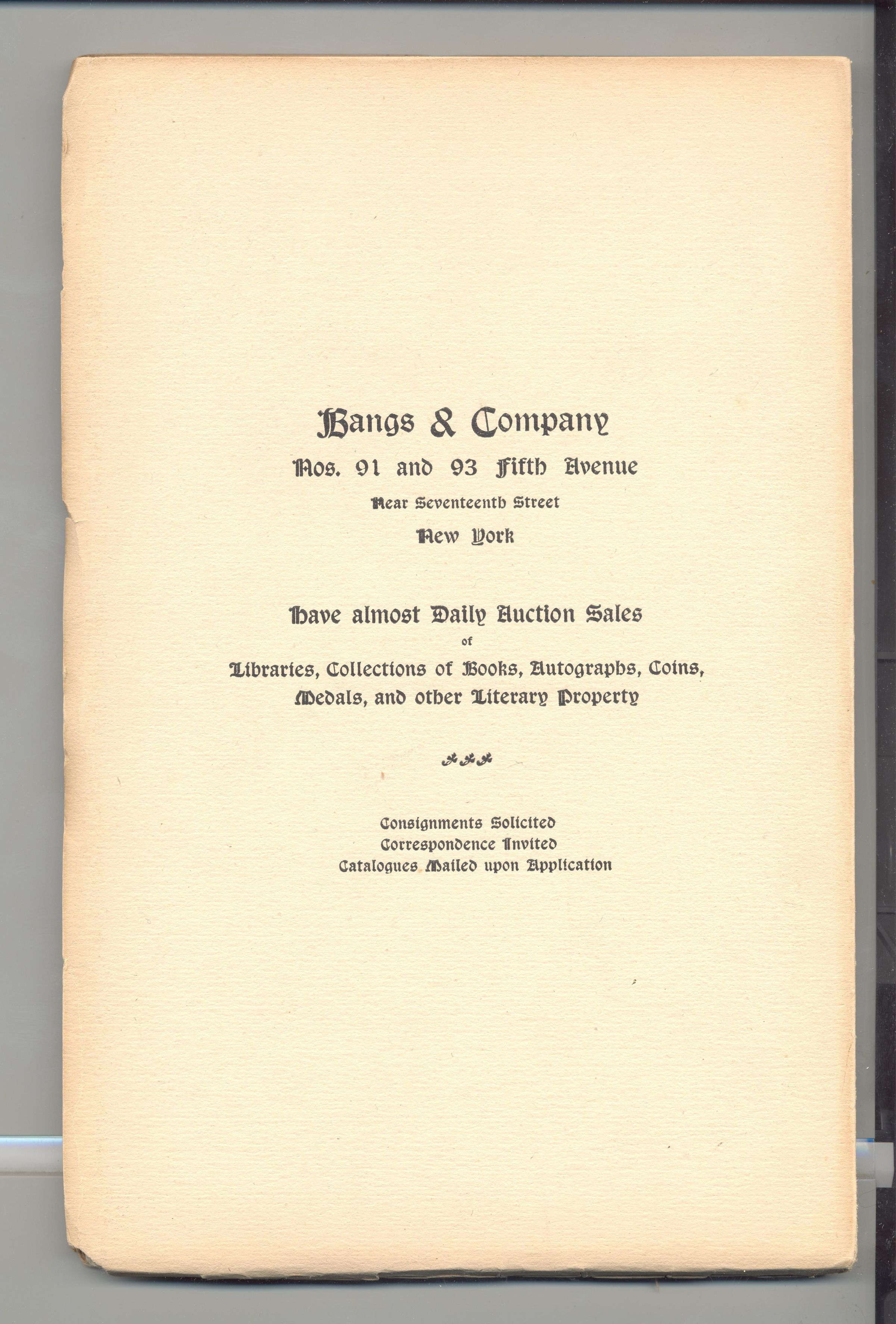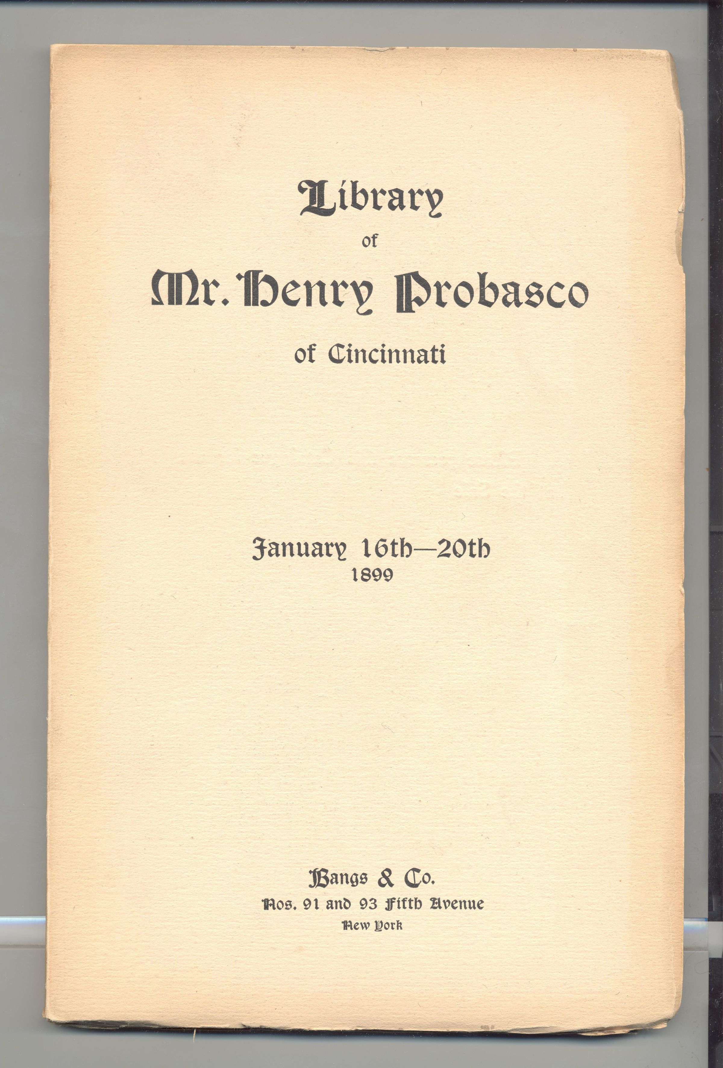 CAT, BOOKS, 1899, NY. LIBRARY OF MR HENRY PROBASCO. BANGS & CO, AUCTS. 155 PP. 6 1/4" X 9 1/2"