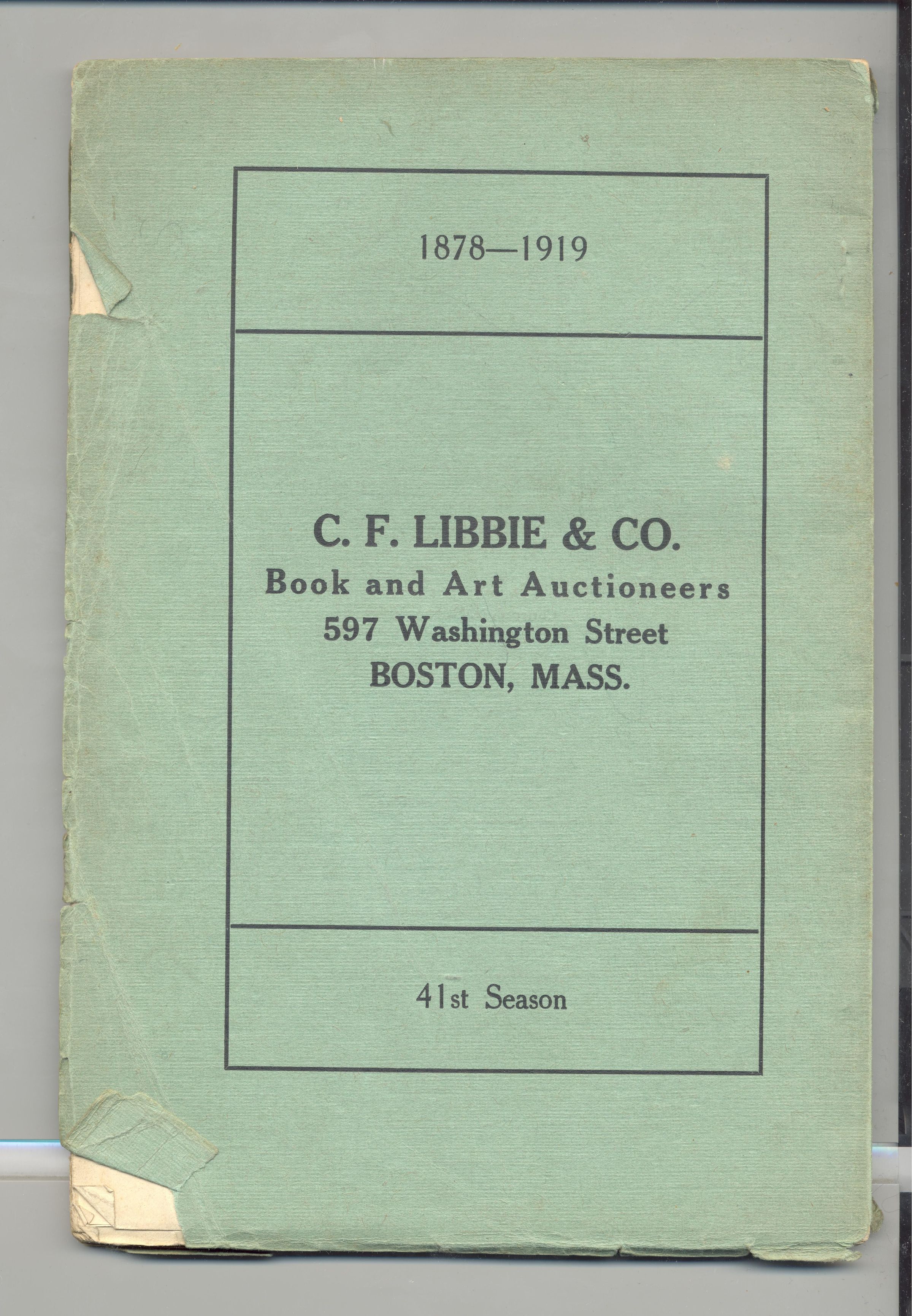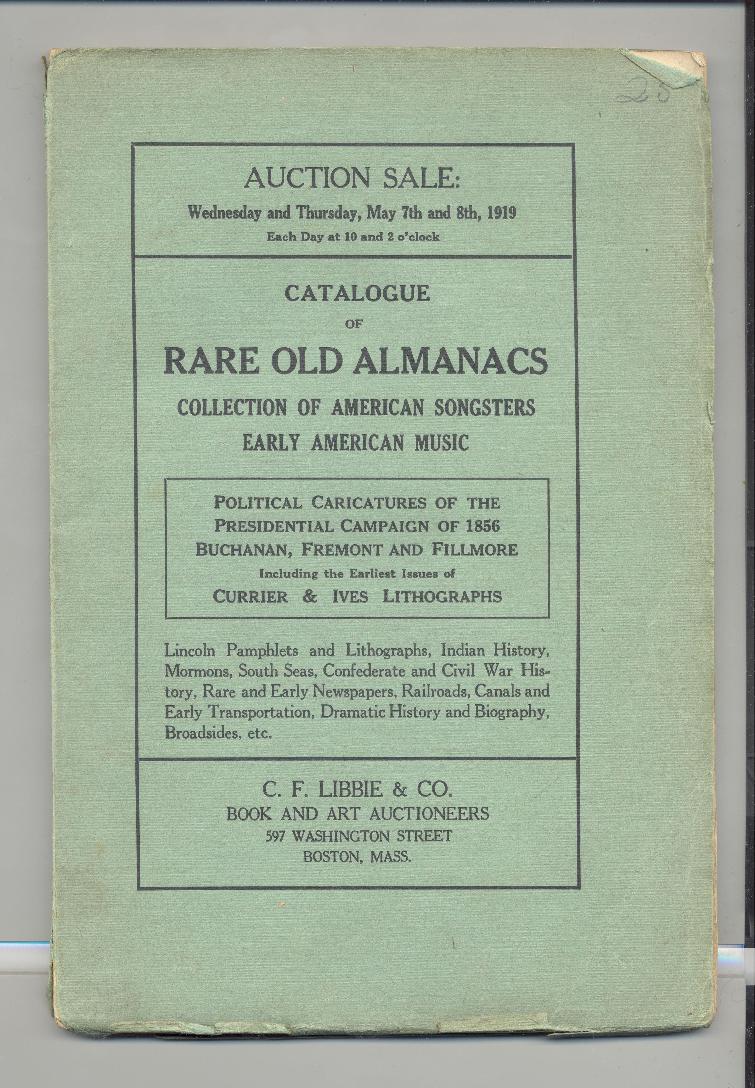 CAT, BOOKS, 1919, MA. RARE OLD ALMANACS, EARLY AMERICAN MUSIC. C.F. LIBBIE & CO, AUCTIONEERS. 120 PP. 6 1/4" X 9 1/4"Created By