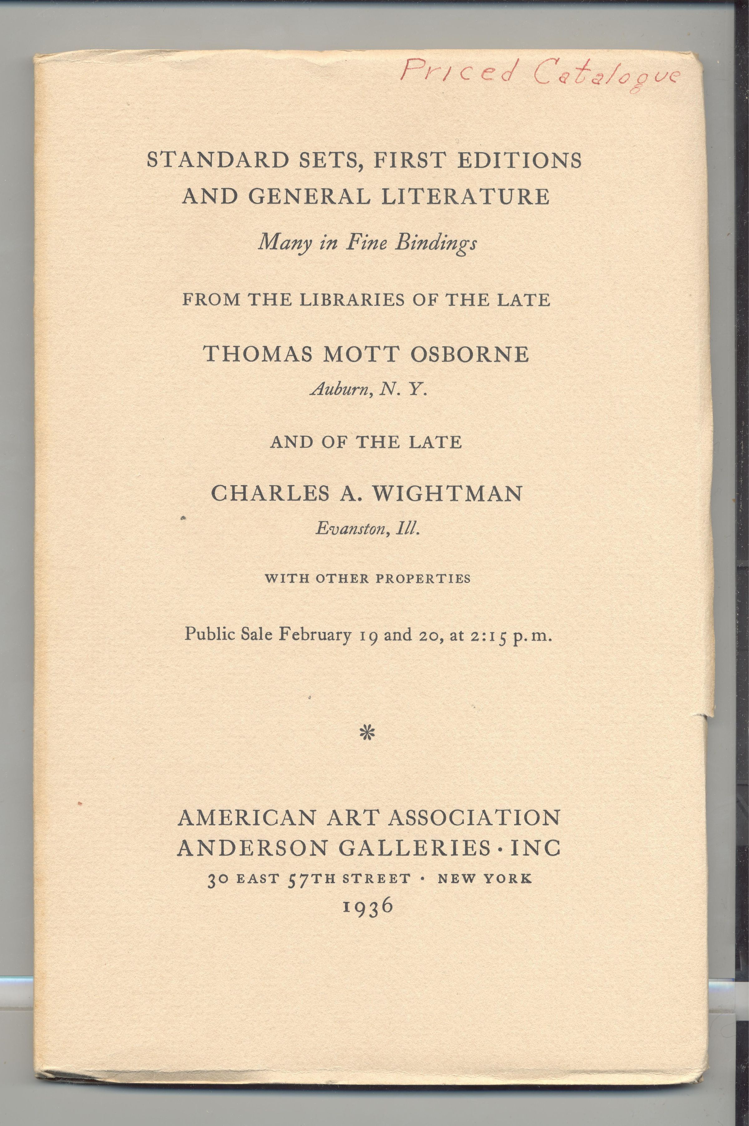 CAT, BOOKS, 1936, NY. STANDARD SETS, FIRST ED, GENERAL LITERATURE. AMERICAN ART ASSOC, ANDERSON GALLERIES, INC. 97 PP, PRICED. 6 1/4" X 9 1/2"Created By