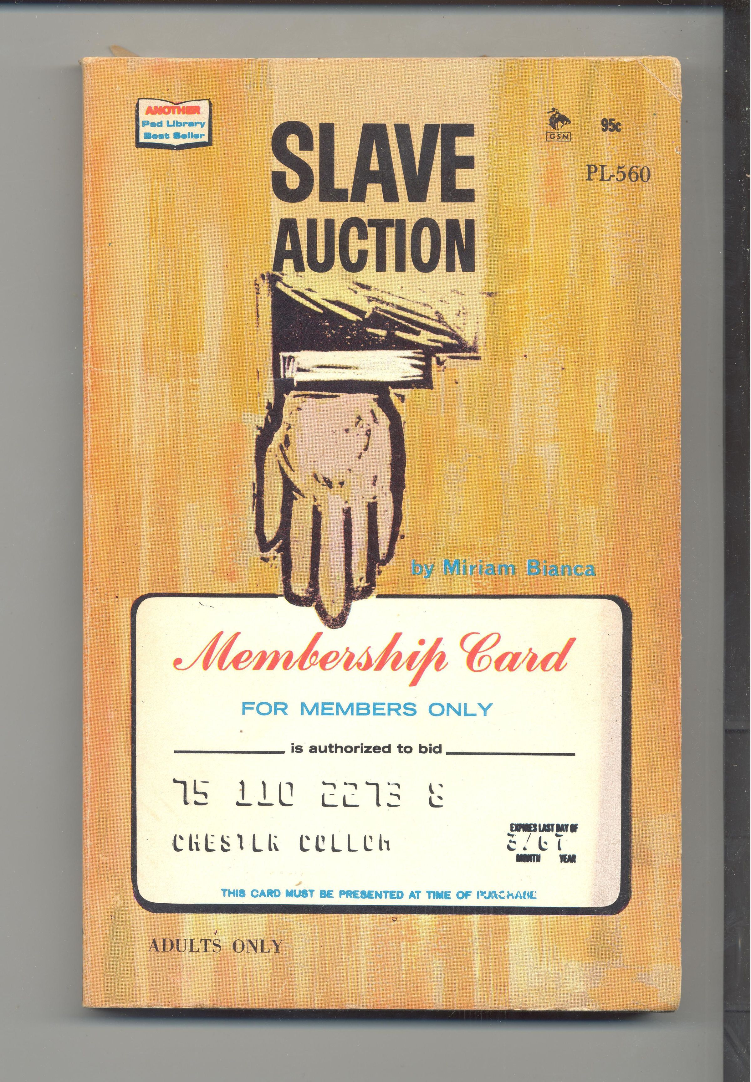 BOOK, SLAVE AUCTION BY MIRIAM BIANCA, COPY 1967 BY EUROPA BOOKS, LTD. 160 PP. 4 1/4" X 6 3/4"