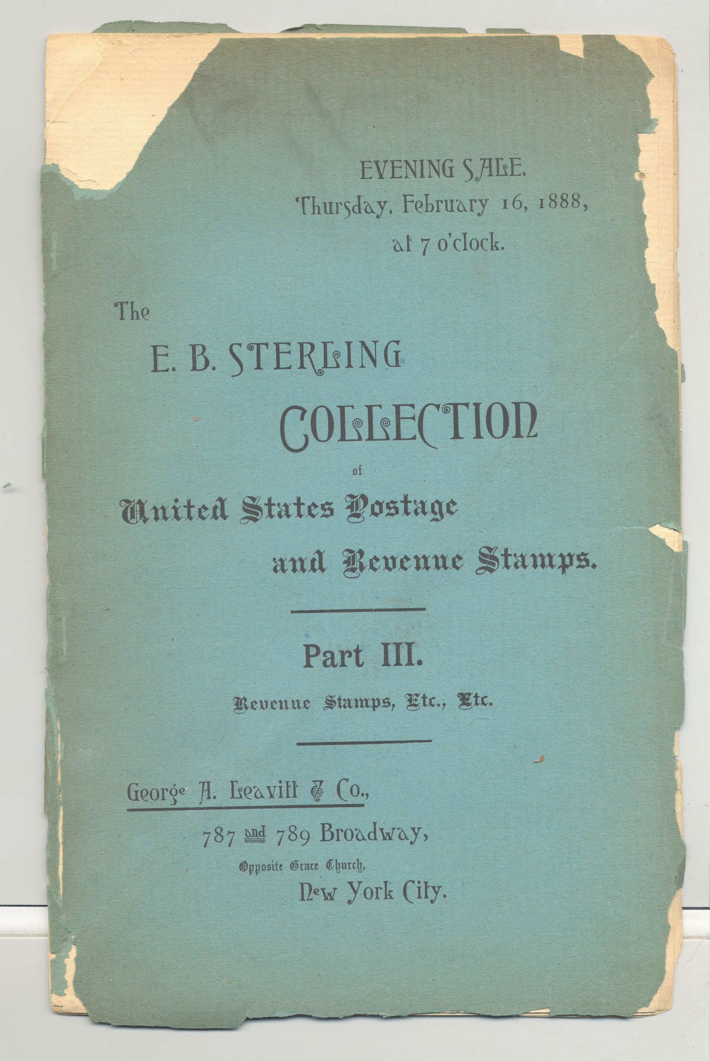 CAT, STAMPS, 1888, NY. THE E.B. STERLING COLLECTION OF US POSTAGE & REVENUE STAMPS. PART III. GEORGE A. LEAVITT & CO. NYC. 18 PP. 6 1/4" X 9 1/2"Created By
