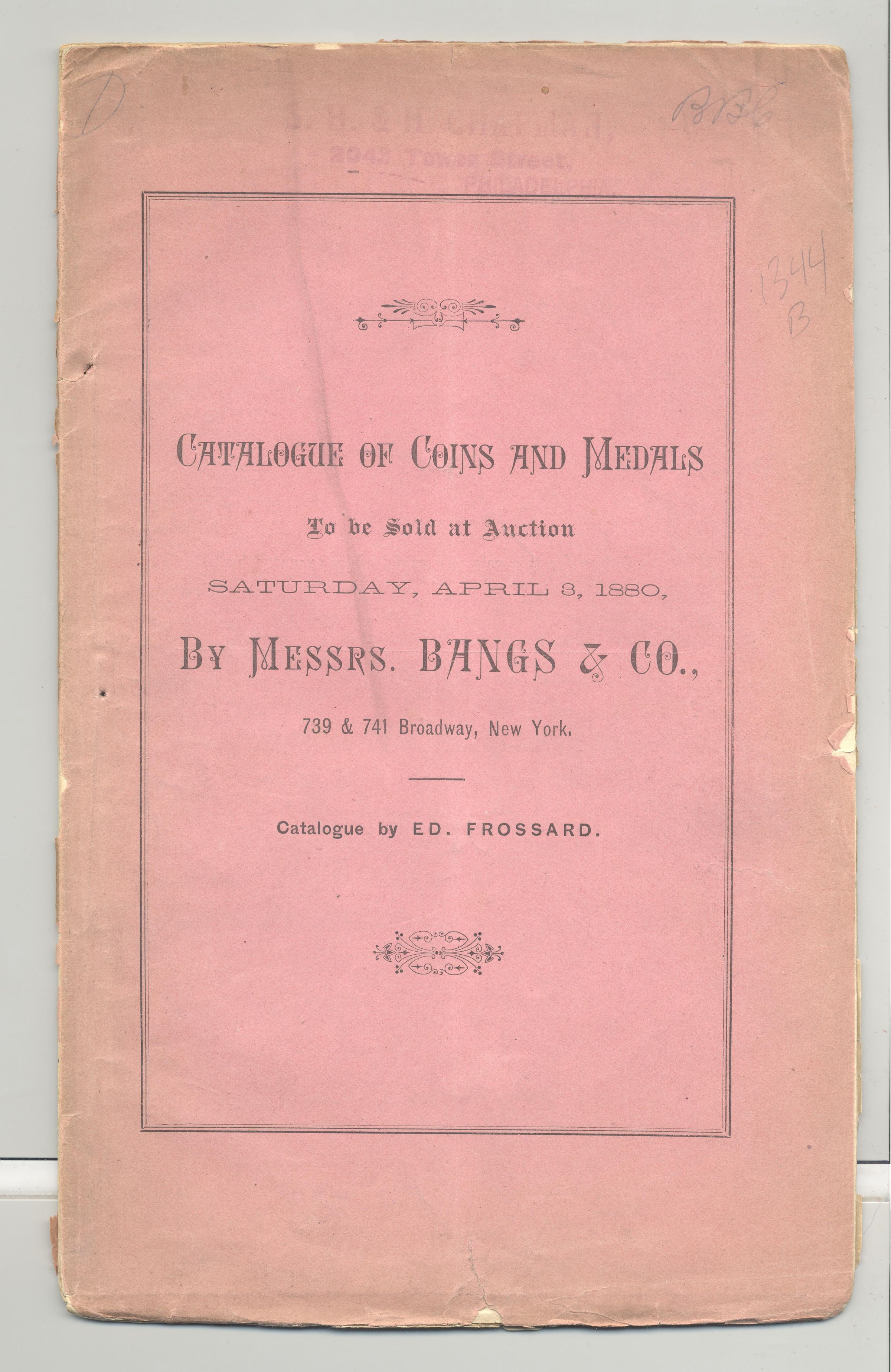 CAT, COINS, 1880, NY. BANGS & CO, AUCTS. PRICED, 37 PP. 6" X 9 3/4"