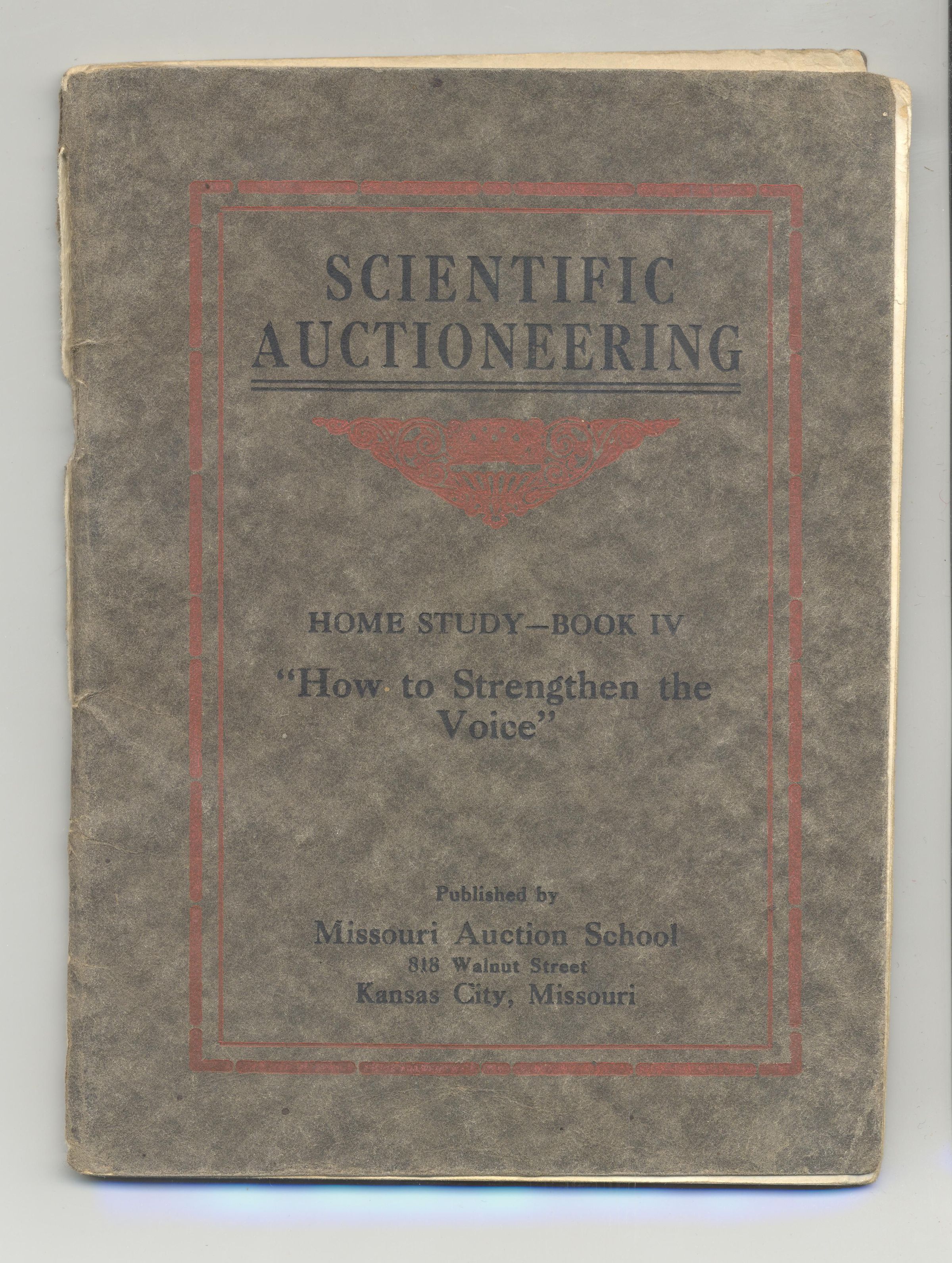 BKLT, SCIENTIFIC AUCTIONEERING HOME STUDY BK IV, "HOW TO STRENGTHEN THE VOICE", PUB BY MO AUCTION SCHOOL. 54 PP, 4 1/2" X 6"Created By