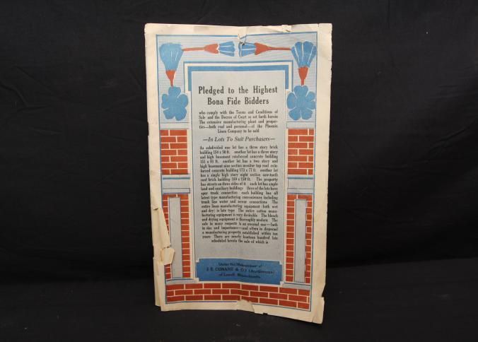 CAT, COMMERICIAL LIQUIDATION, 1919, MA. PHOENIX LINEN CO. PROPERTY. INCL MAP AND DRAWINGS. 69 PP. CAT 7" X 10 1/4", MAP UNFOLDED 21" X 20"Created By