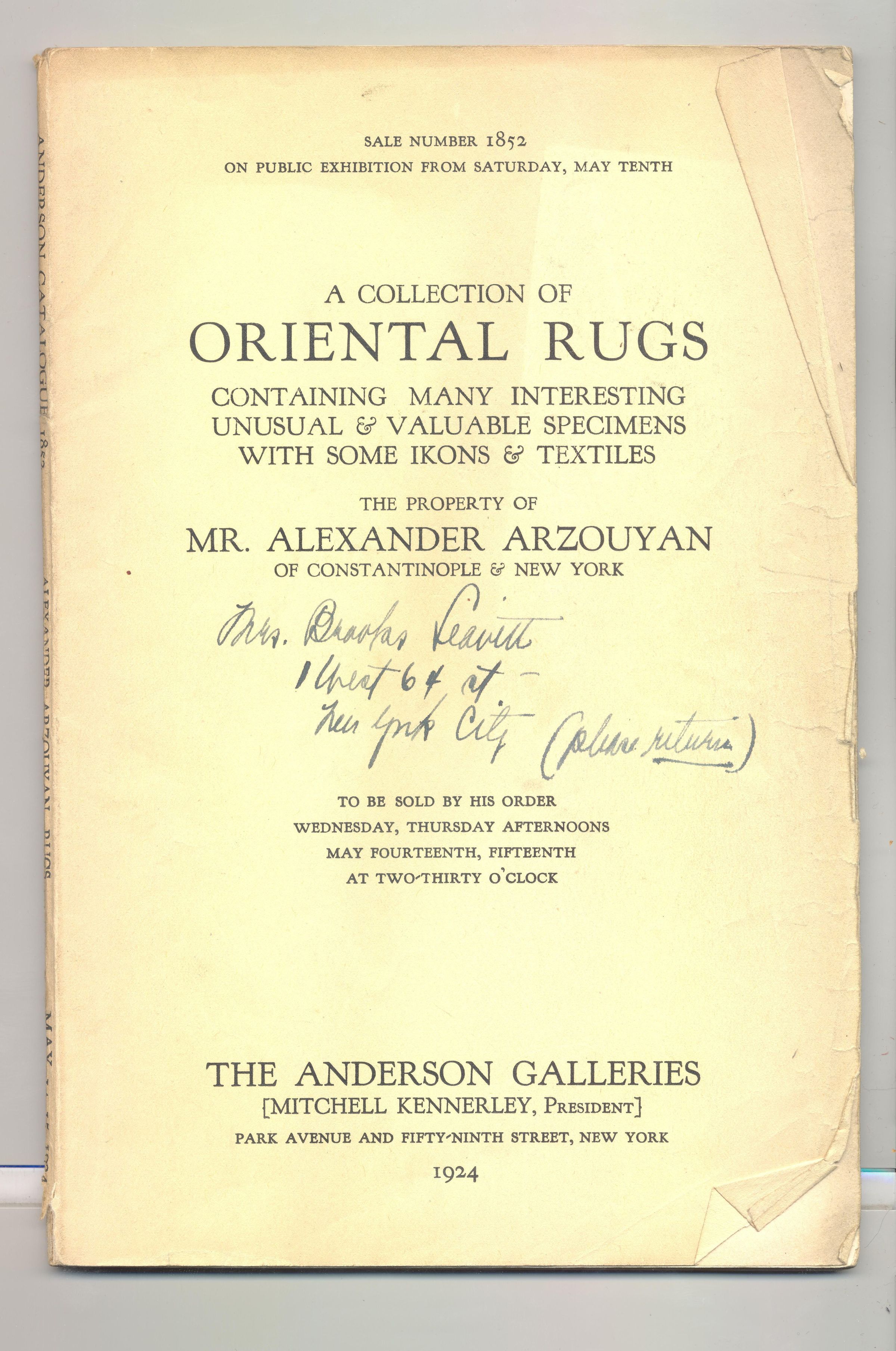 CAT, RUGS, 1924, NY. ANDERSON GALLERIES SALE NO. 1852, COLLECTION OF ORIENTAL RUGS. CHAPMAN & BADE, AUCTS. SOME PRICES, ILLUS. 46 PP. 6" X 9 1/4"Created By
