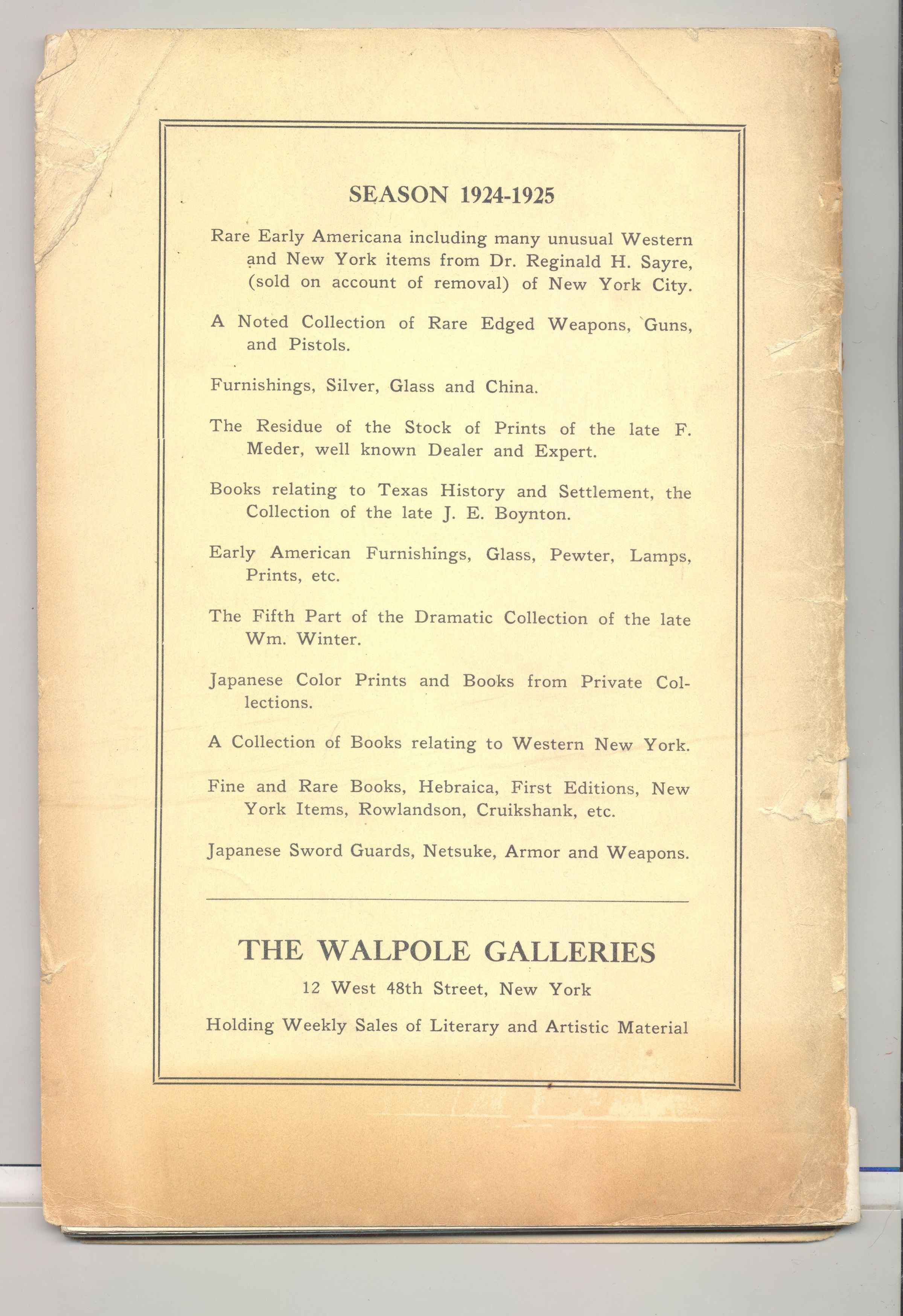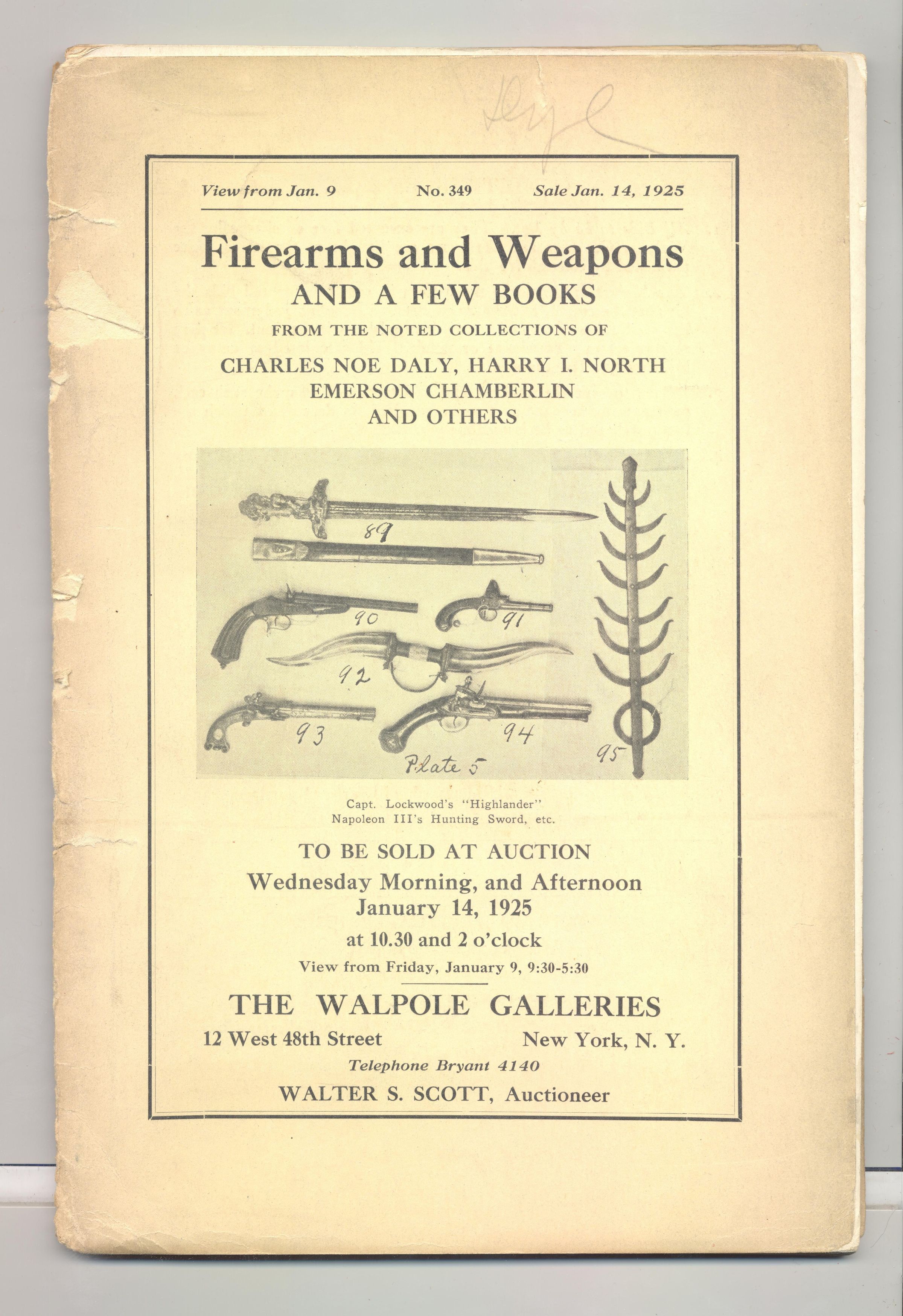 CAT, WEAPONS, 1925, NY. FIREARMS, WEAPONS, BOOKS. THE WALPOLE GALLERIES, WALTER SCOTT, AUCTIONEER. ILLUS. 72 PP. 6" X 9"Created By