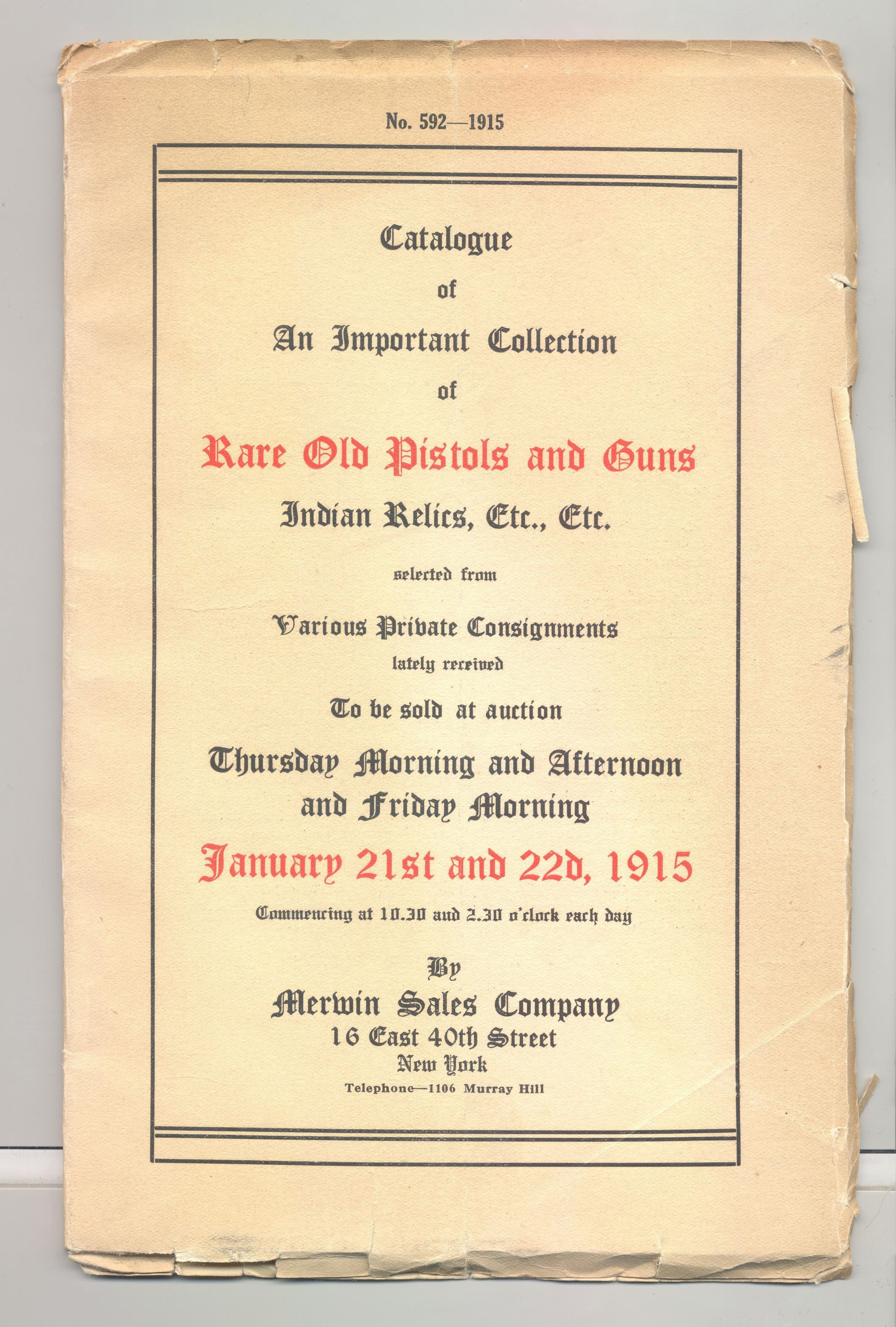 CAT, WEAPONS, 1915, NY. RARE OLD PISTOLS & GUNS, INDIAN RELICS, ETC. MERWIN SALES CO. ILLUS, 58 PP. 6" X 9"Created By