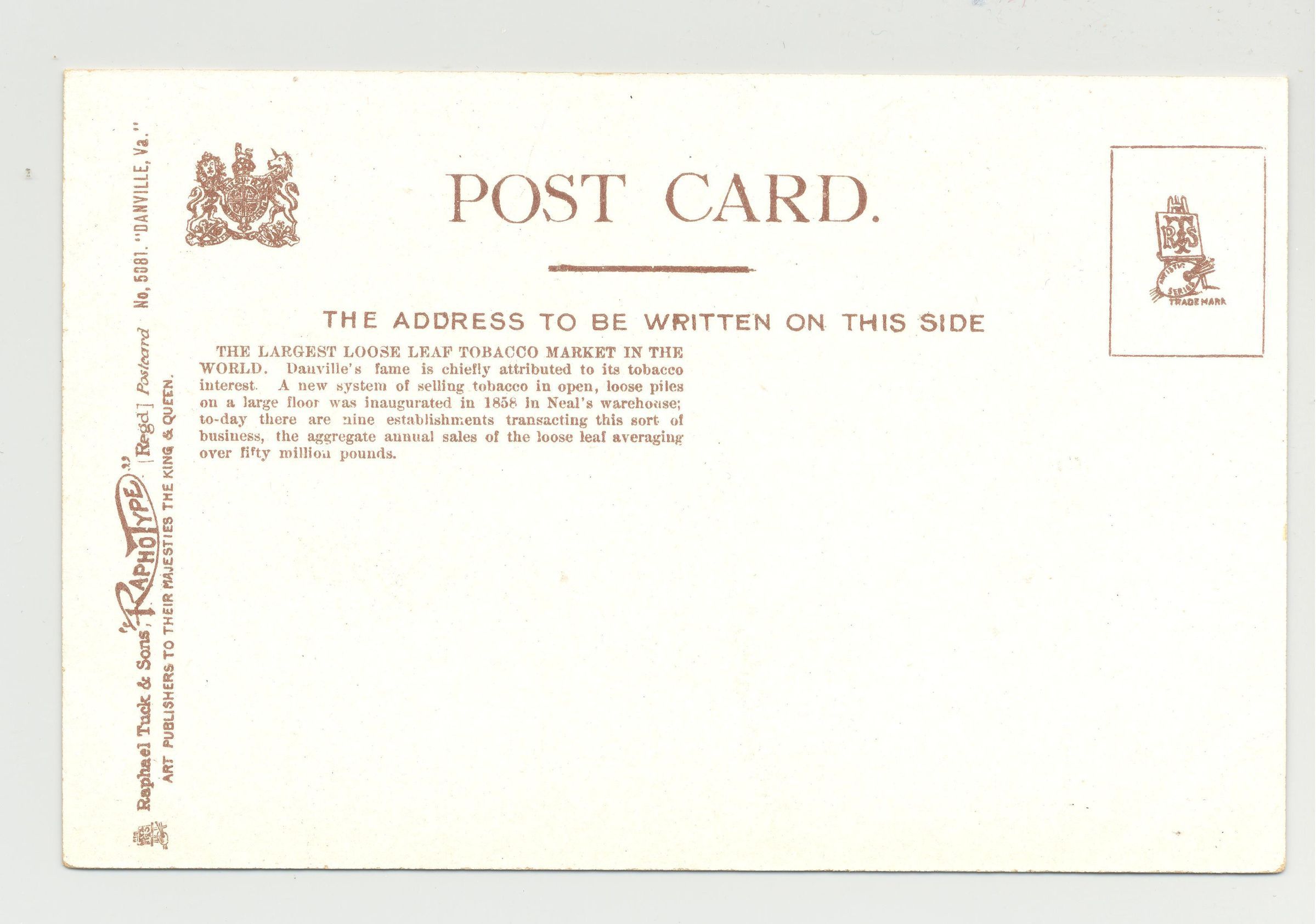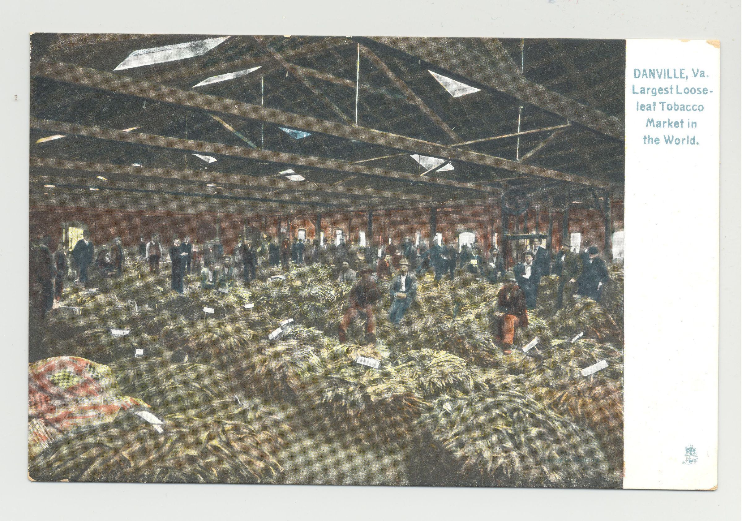 PSTCD, TOBACCO, VA. DANVILLE, VA, LARGEST LOOSELEAF TOBACCO MARKET IN THE WORLD. COLOR PRINT