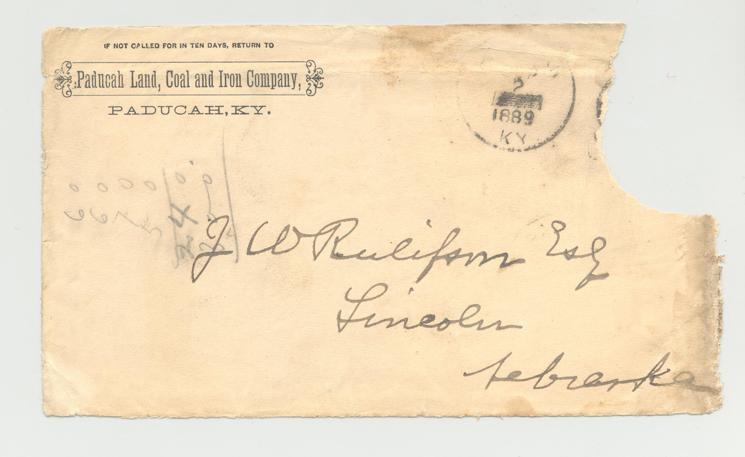 DOC, LETTER, 1889, KY. PADUCAH LAND, COAL AND IRON CO.