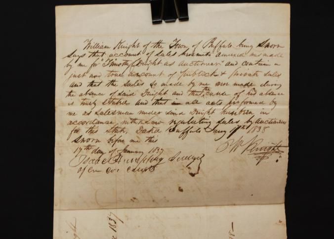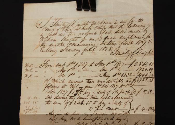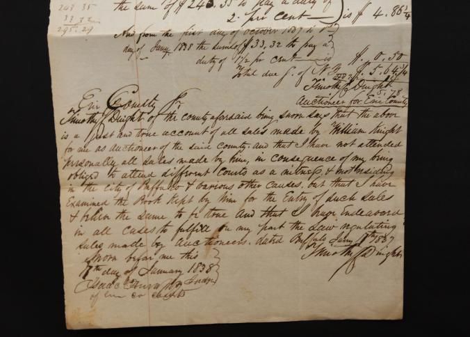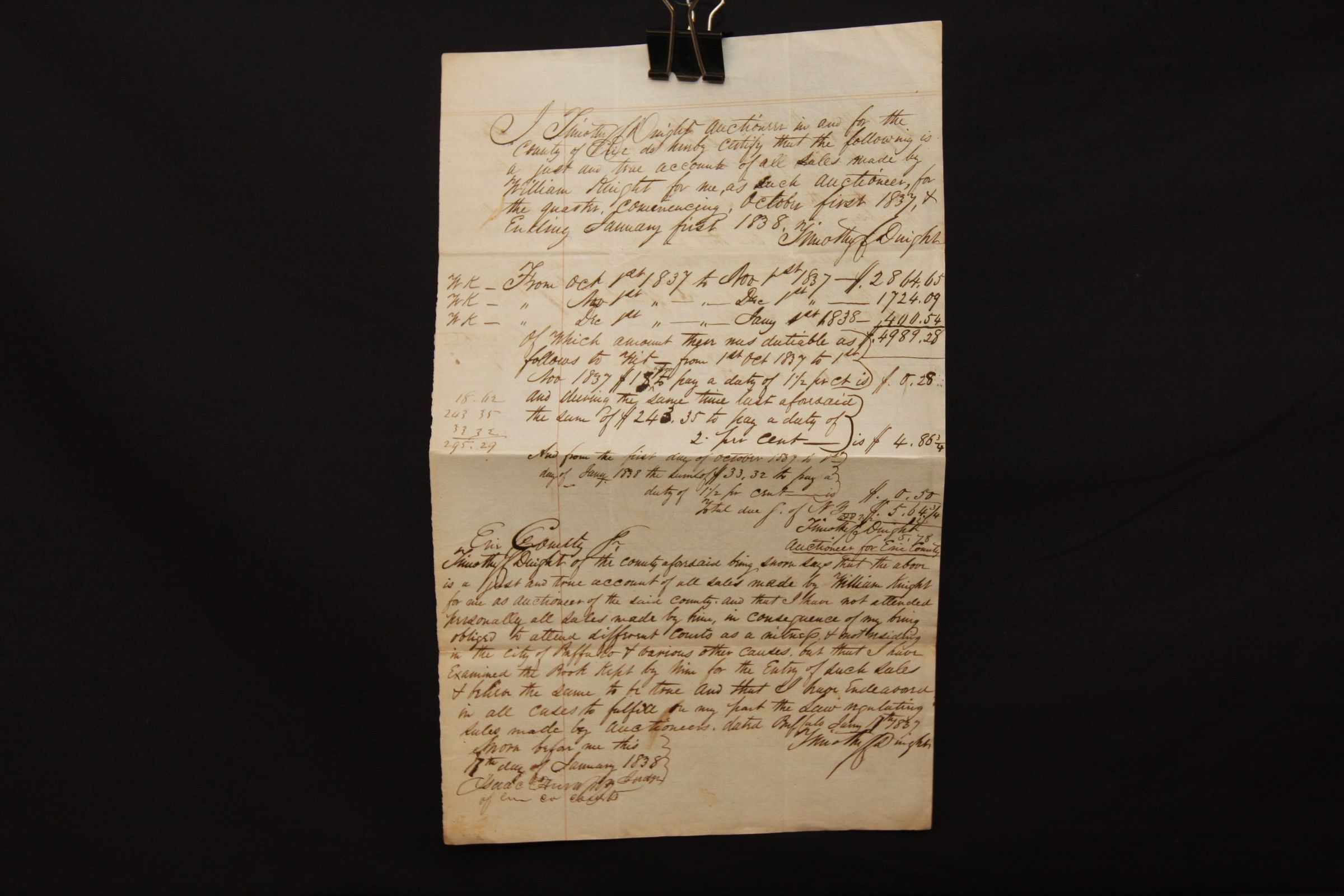 DOC, LETTER, 1837, ERIE COUNTY, PA. ACCOUNT SETTLEMENT, SIGNED TIMOTHY DWIGHT, 8" X 13"