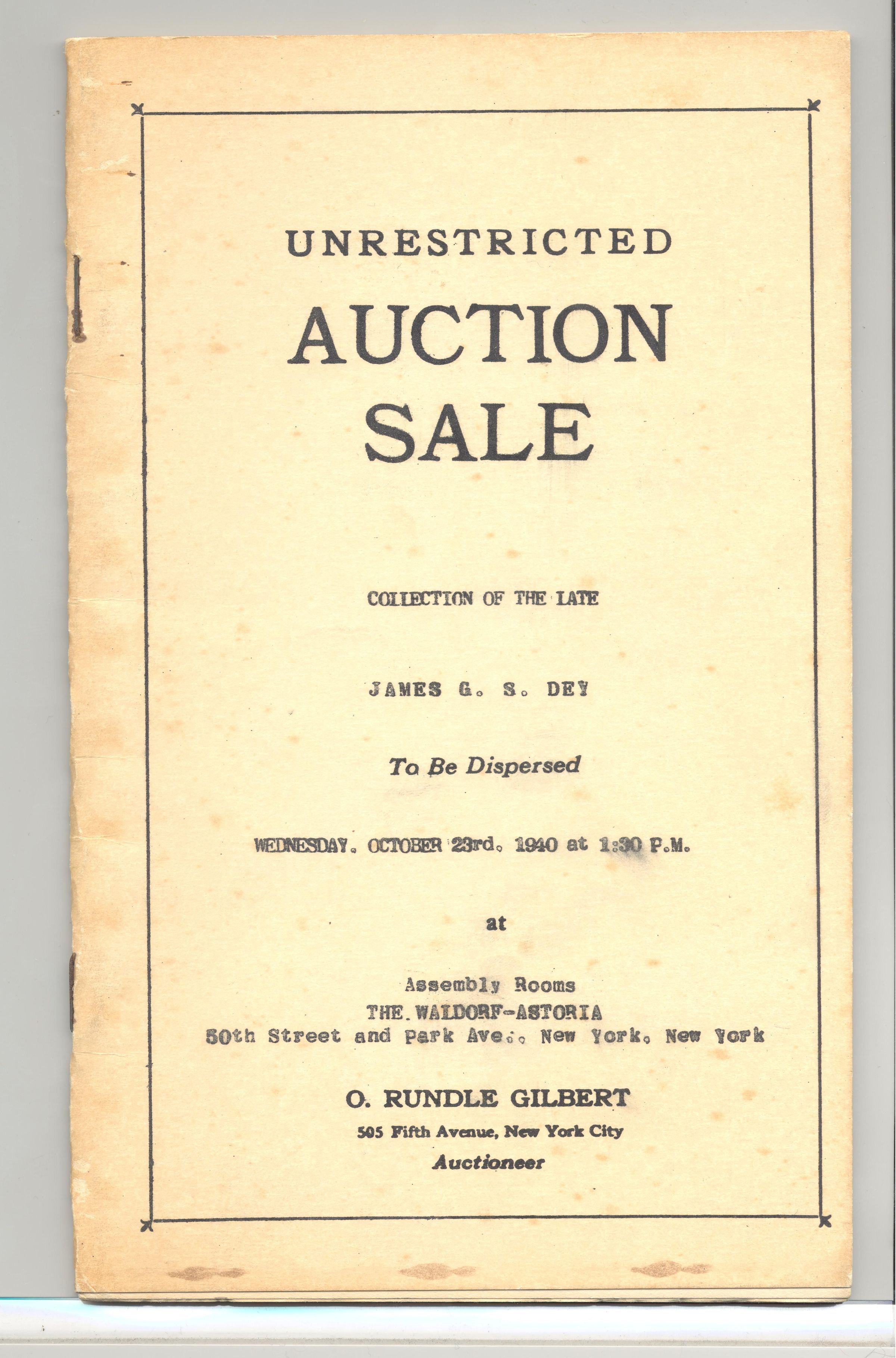 CAT, WEAPONS, 1940, NY. O.RUNDLE GILBERT, AUCTIONEER, 38 PP. 5 1/4" X 8 1/2"