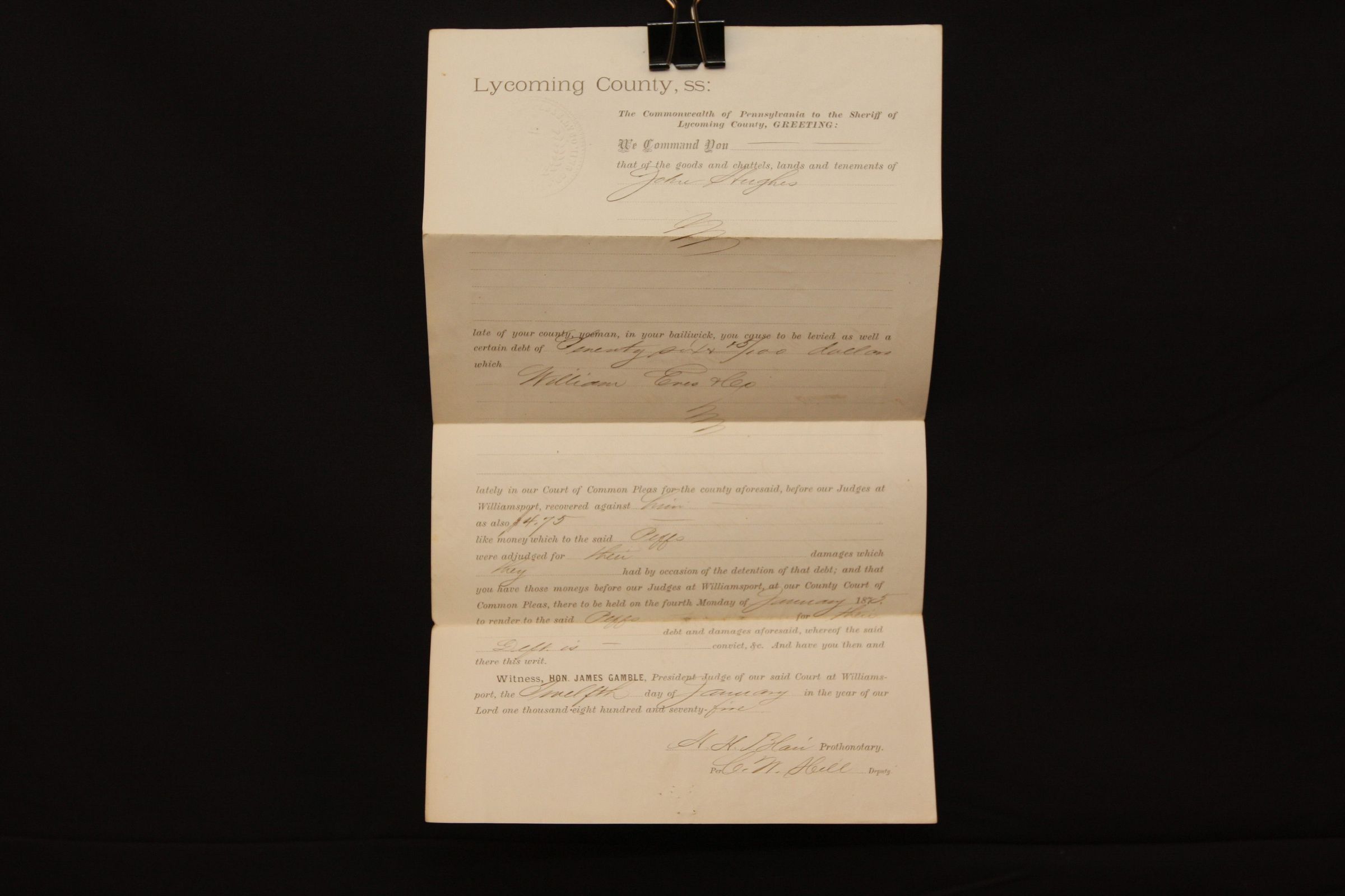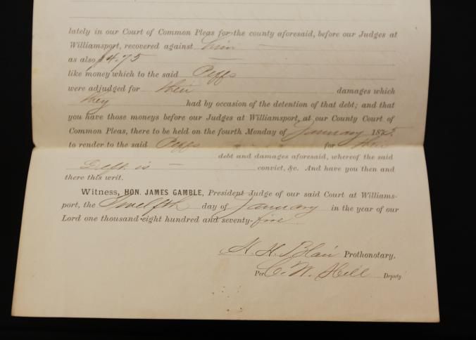DOC, COURT DOC, 1875, PA. 8 1/2" X 14"