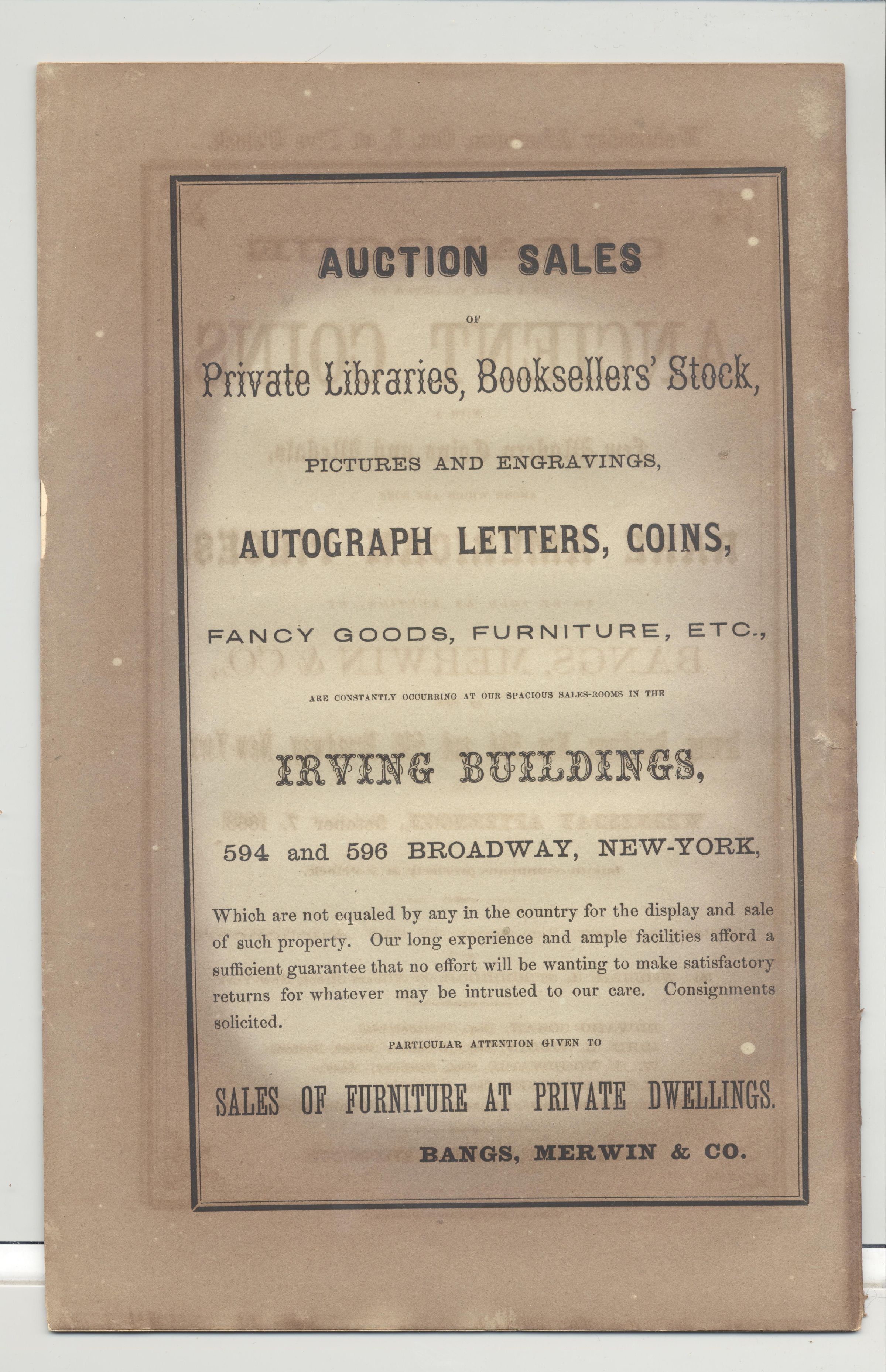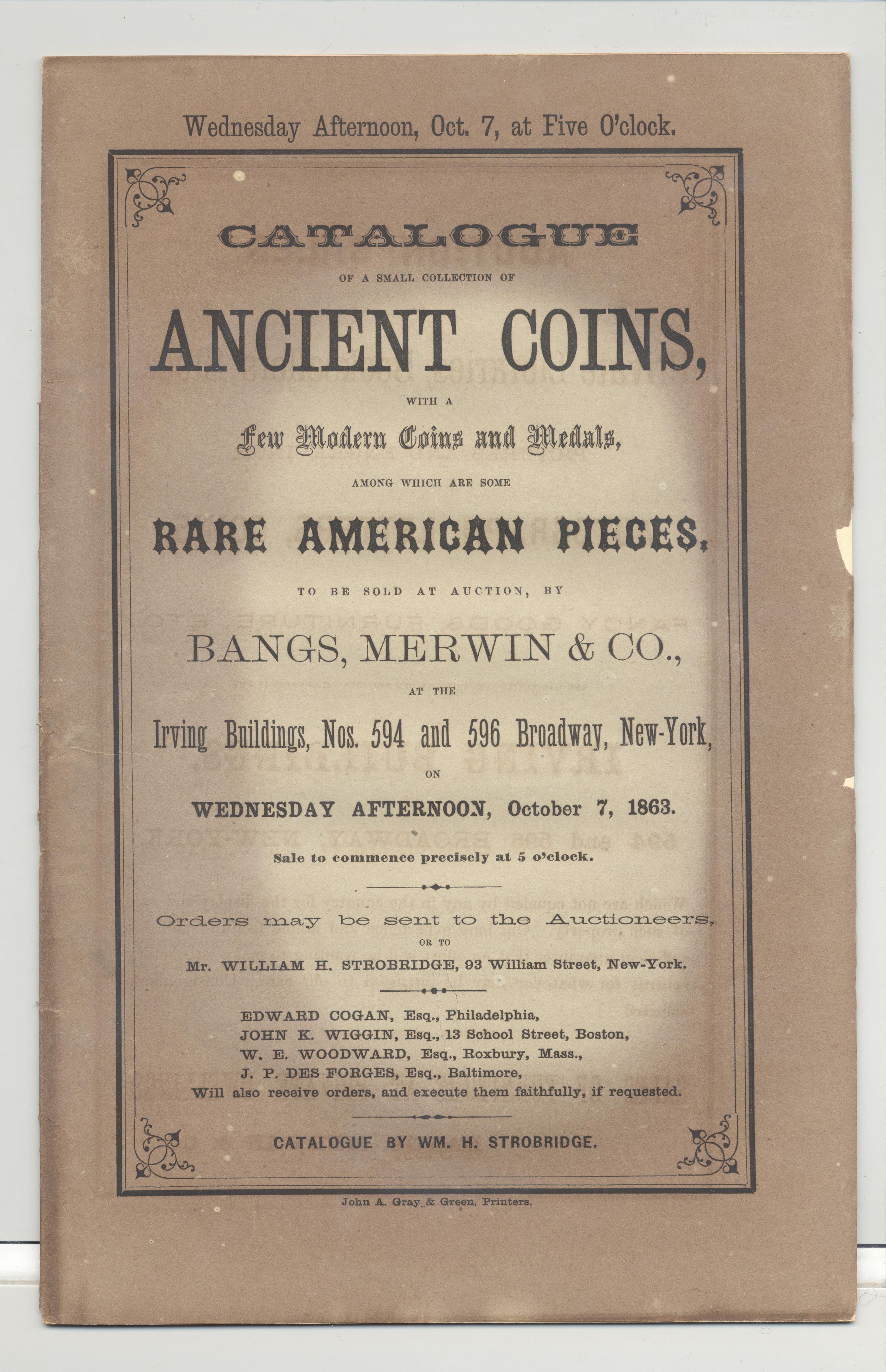 CAT, COINS, 1863, NY. BANGS, MERWIN & CO, AUCTIONEERS. 26 PP. 6" X 9 1/4"