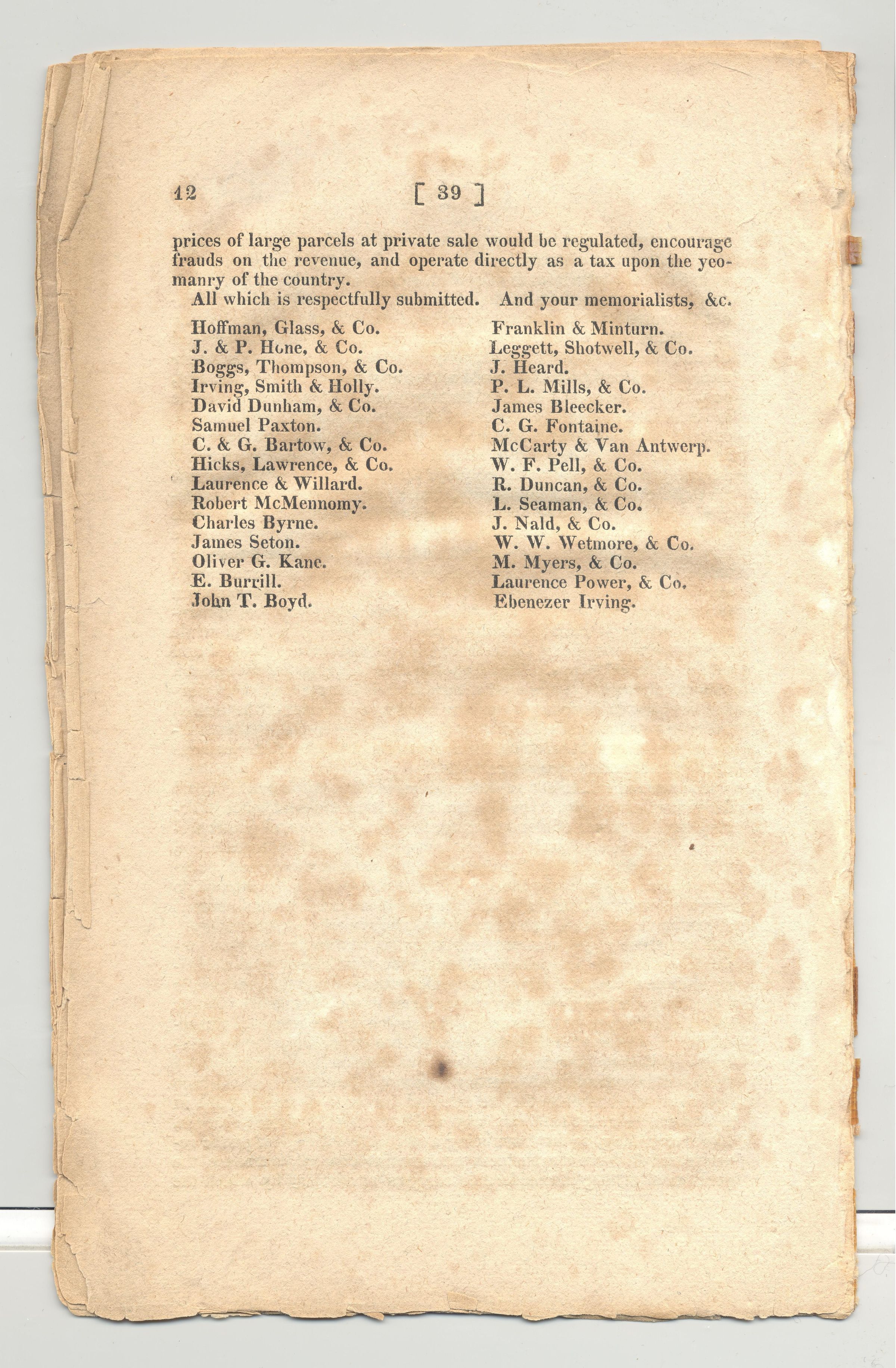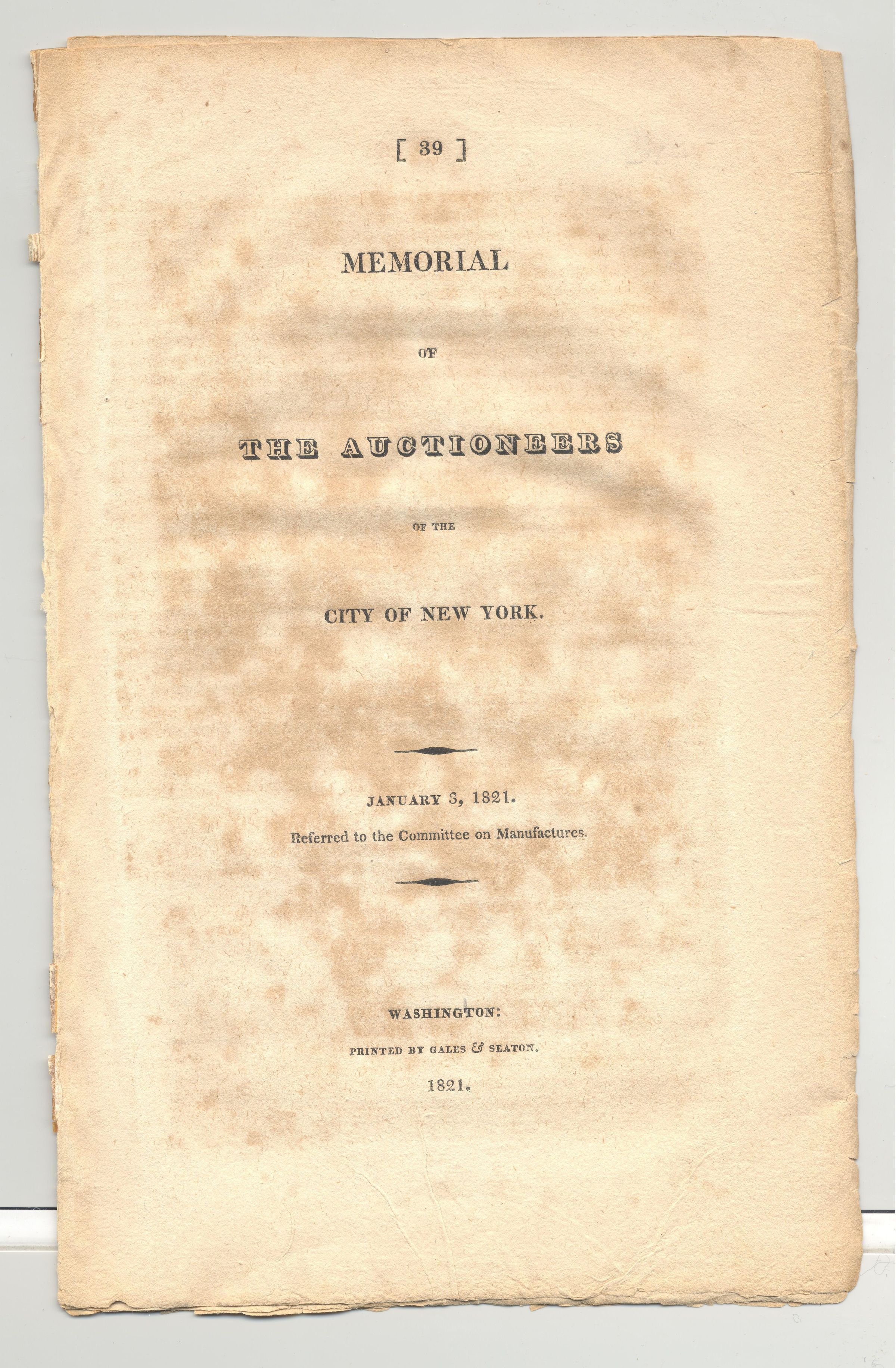 DOC, POLITICAL, 1821, MEMORIAL OF THE AUCTIONEERS OF THE CITY OF NY. 12 PP. 5 3/4" X 9 1/4"