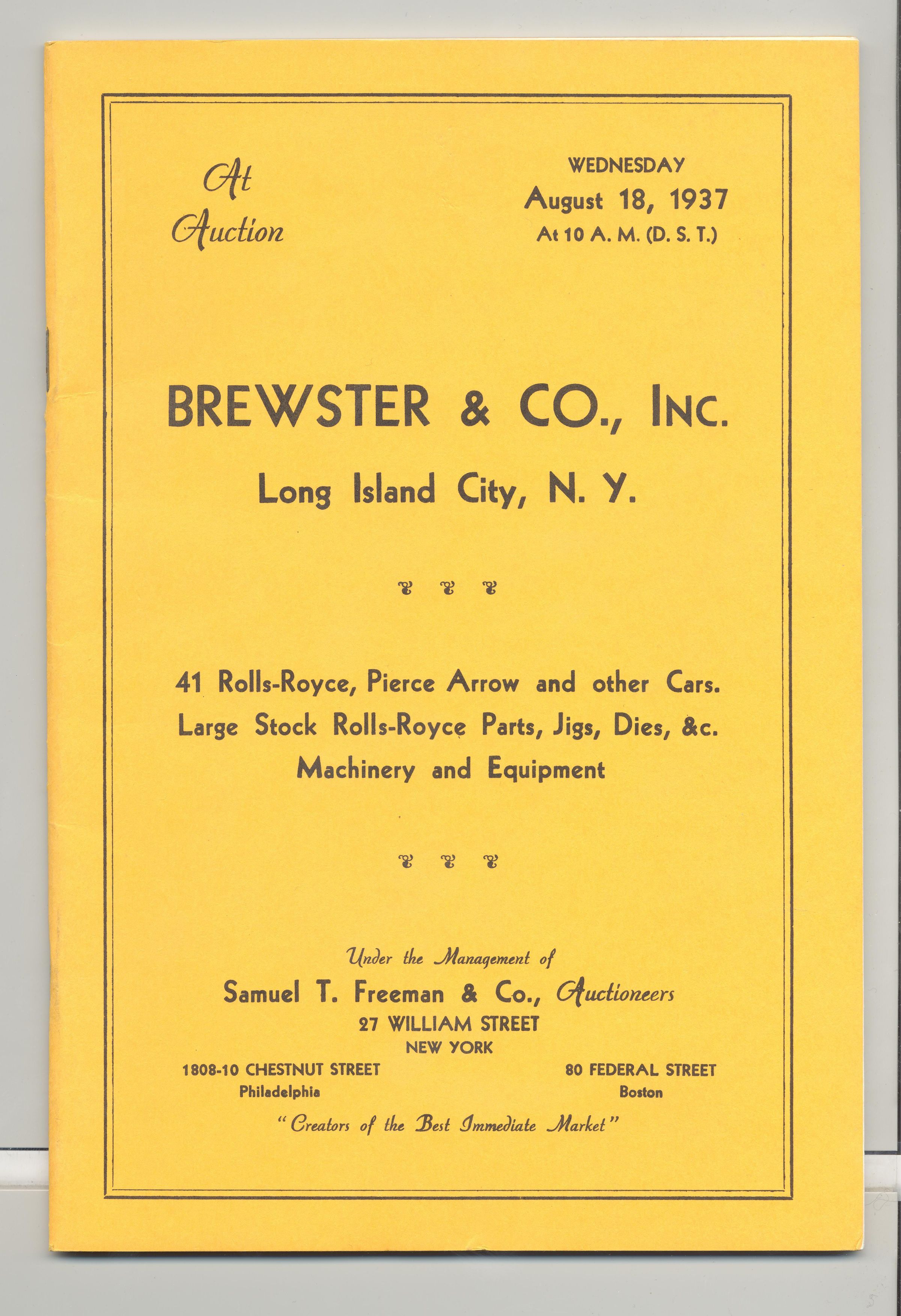 CAT, AUTO, 1937, NY. 41 ROLLS-ROYCE, PIERCE ARROW AND OTHER CARS, MACHINERY AND EQUIPMENT. SAMUEL T. FREEMAN & CO, AUCTIONEERS. PHOTOS, 37 PP. 6 1/4" X 9 1/4"Created By