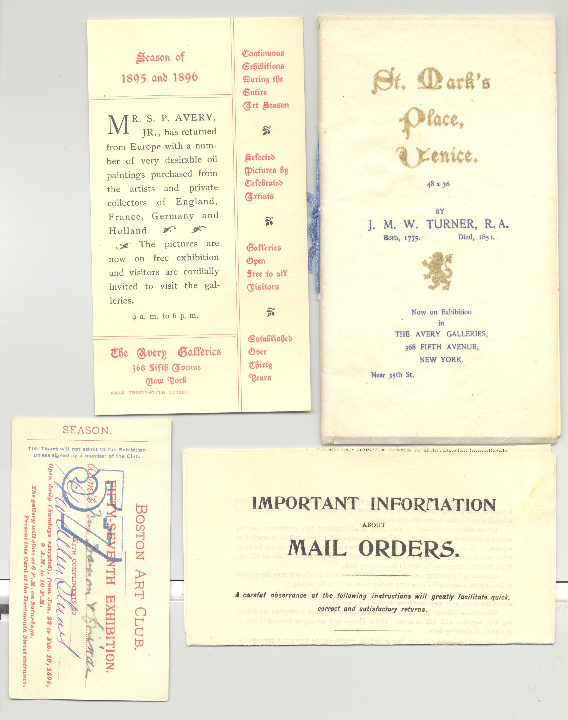 BKLT AND DOCS, AVERY GALLERIES, NY. 1896. OIL PAINTINGS EXHIBITION PAPERS, BKLT ON ST. MARK'S PLACE, VENICE 27 PP. 3 1/2" X 6 1/2"Created By
