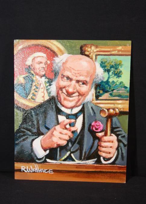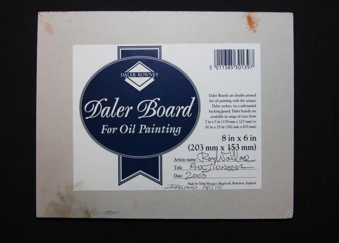 OIL PAINTING ON BOARD, SIGNED ROY WALLACE - IRELAND ARTIST. "AUCTIONEER" 2005 8" X 6"