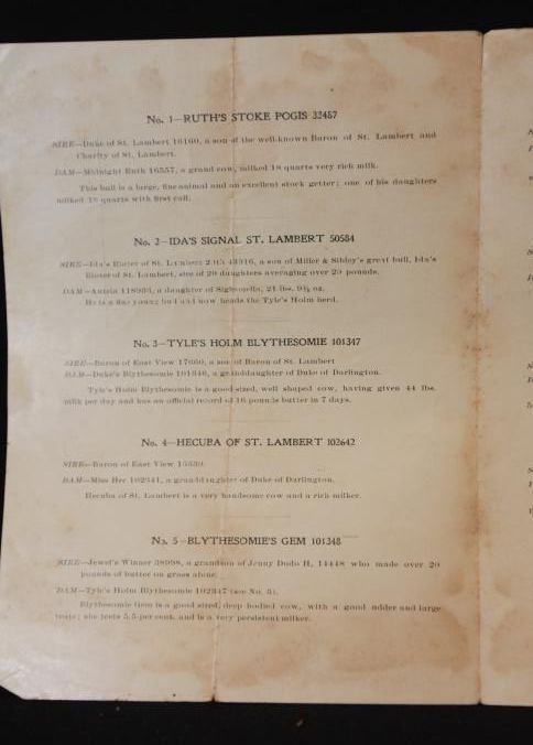 CAT, CATTLE, NY. TYLE'S HOLM JERSEY HERD, J.F. GOULD PROPRIETOR. PAPER, FOLDED DIM. 5 1/2" X 8"