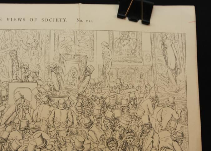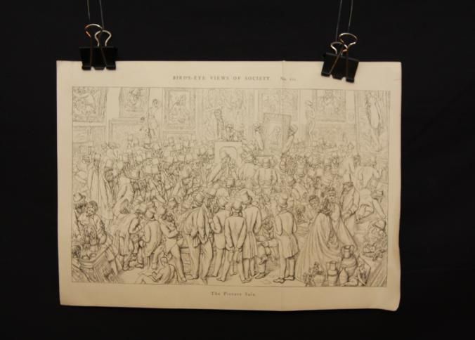 ENGRAVING, "THE PICTURE SALE" FROM BIRD'S-EYE VIEW OF SOCIETY, NO. VII. CROWD AT ART AUCTION, 13" X 8 1/2"Created By