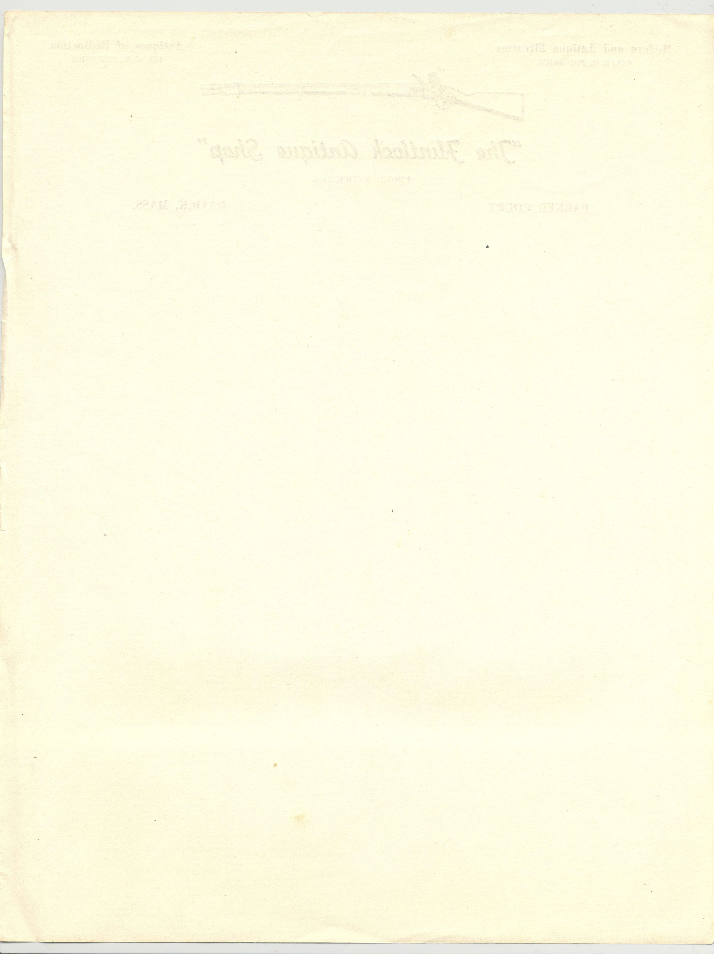 DOC, LETTERHEAD, MA. THE FLINTLOCK ANTIQUE SHOP, MODERN AND ANTIQUE FIREARMS, RALPH PHILBRICK. 8 1/2" X 11"Created By
