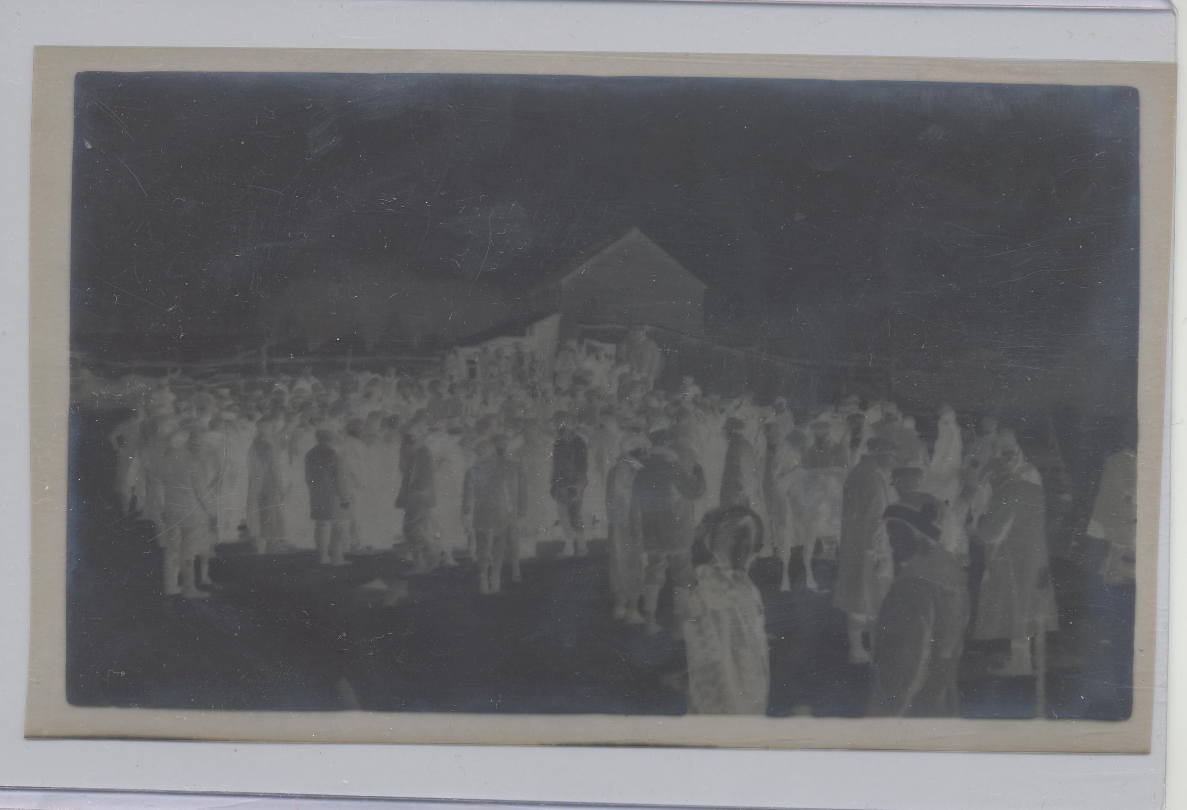 PHOTO NEGATIVE, FARM AUCTION, CROWD OF PEOPLE. 3 1/2" X 5"