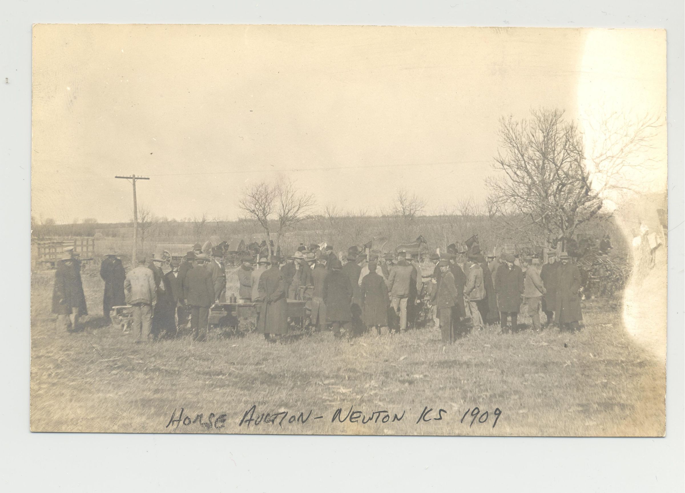 PSTCD, HORSE, 1909, KS. B/W PHOTO, WRITTEN ON FRONT "HORSE AUCTION - NEWTON KS 1909"