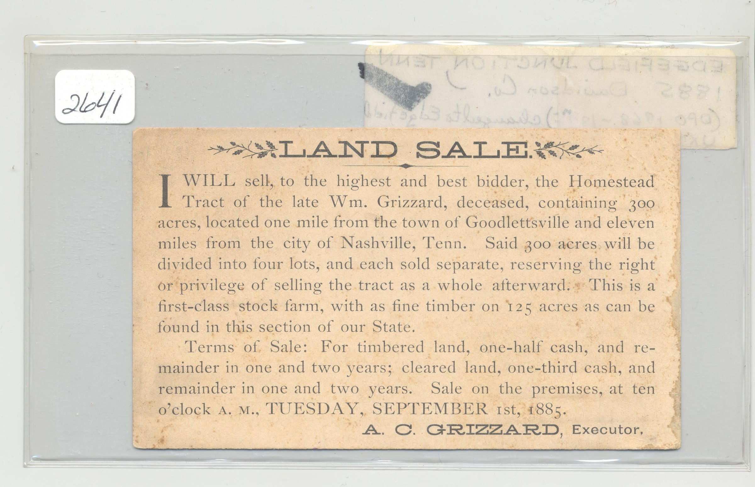PSTCD, LAND, 1885, TN. A.C. GRIZZARD, EXECUTOR.