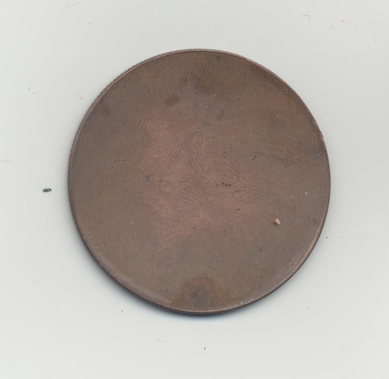 COIN, ADVERTISING, "ACOCK & HANKS, AUCTIONEERS 6D" 1 1/2" DIAMETER