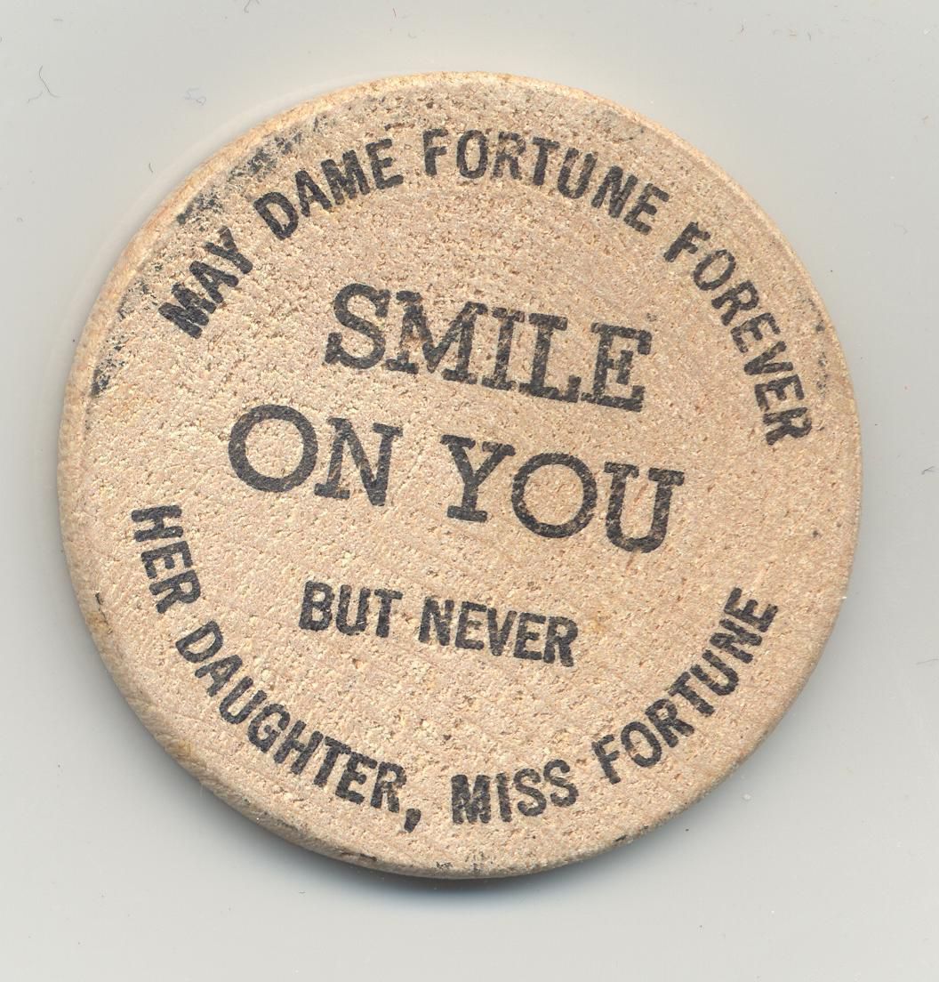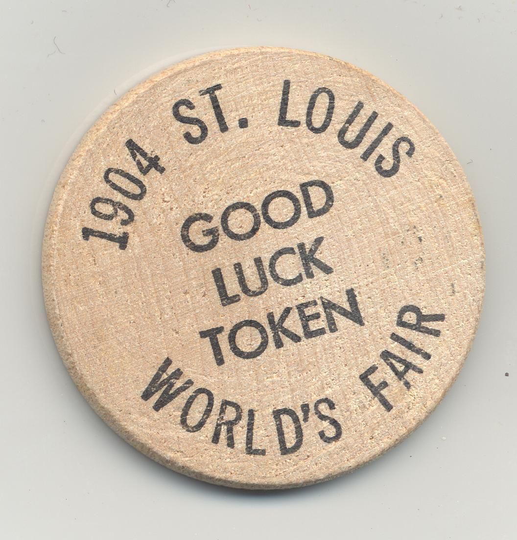 ADVERTISING TOKEN, MO, 1904. GOOD LUCK TOKEN, WORLD'S FAIR. "MAY DAME FORTUNE SMILE ON YOU BUT NEVER HER DAUGHTER MISS FORTUNE" 1 1/2" DIAMETERCreated By
