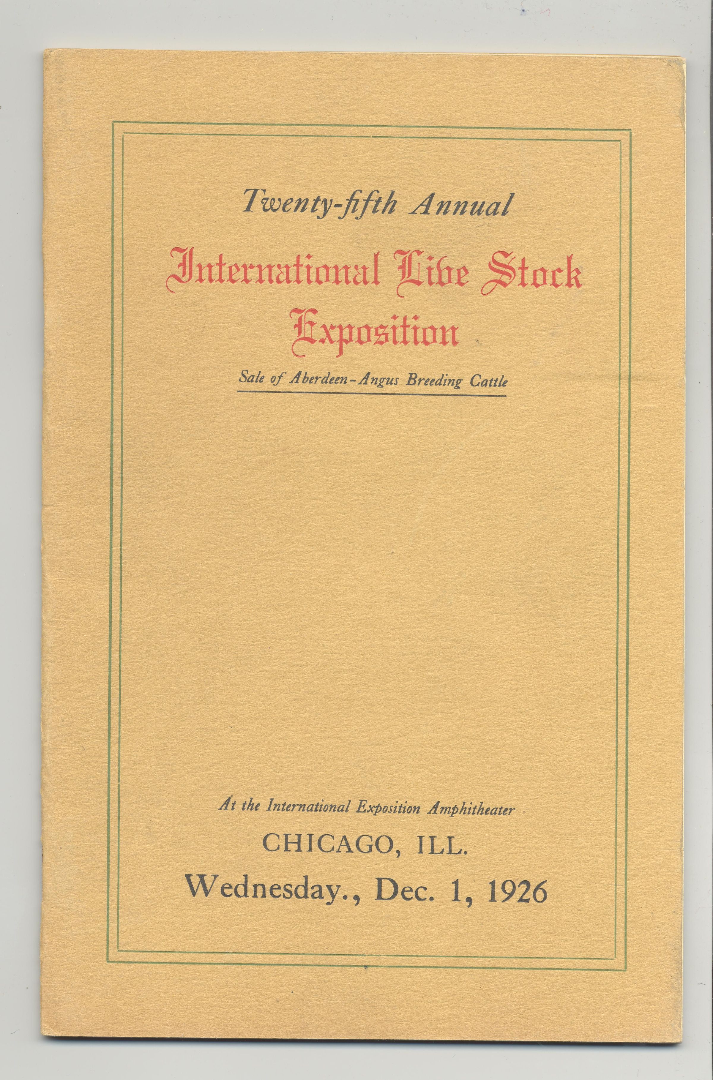 CAT, LIVESTOCK, 1926, IL. 25TH ANNUAL INTERNATIONAL LIVE STOCK EXPOSITION - SALE OF ABERDEEN - ANGUS BREEDING CATTLE. COL. COOPER & KRASCHEL, AUCTIONEERS. 26 PP. 5" X 8"Created By