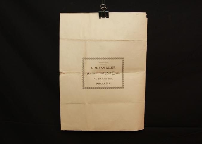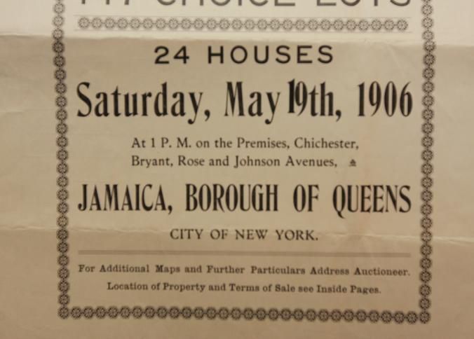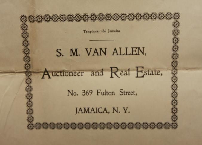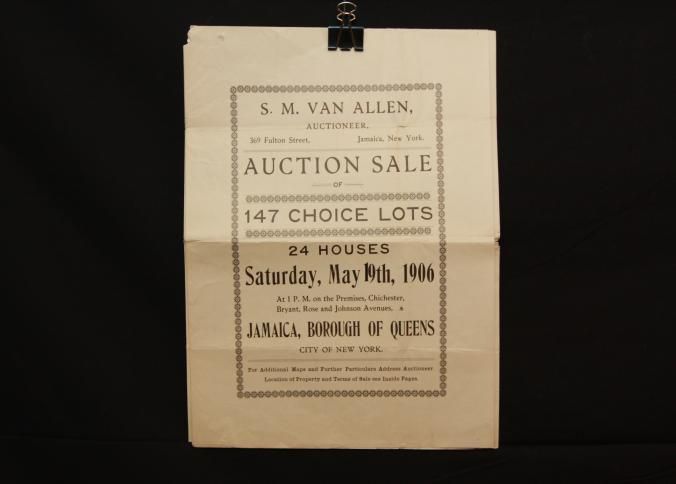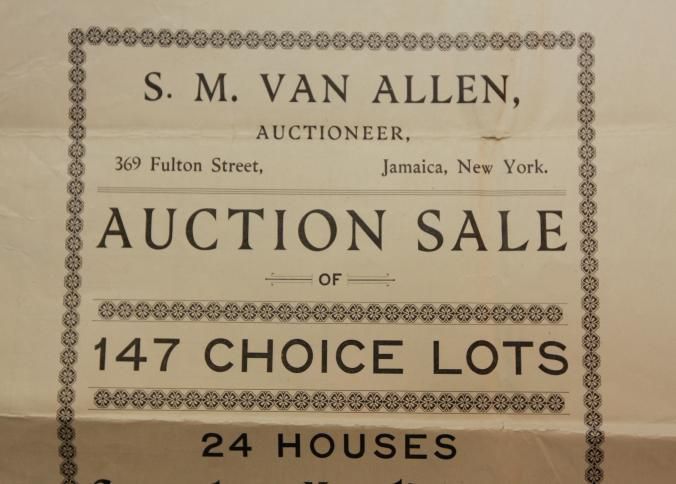 ADVERTISING, MAP AND PARTICULARS. 1906, NY. S.M. VAN ALLEN, AUCTIONEER. 147 LOTS, 24 HOUSES IN QUEENS. 11" X 14"Created By
