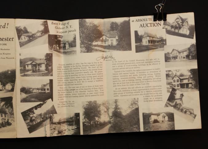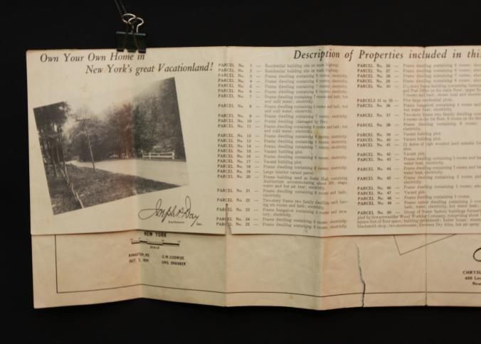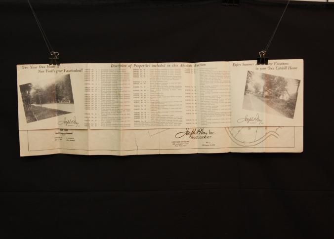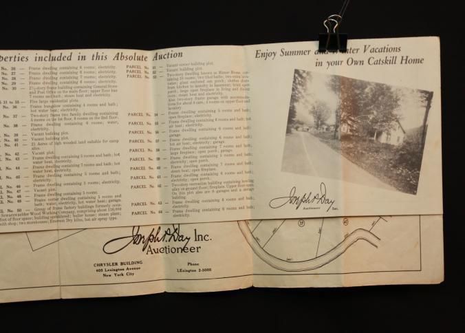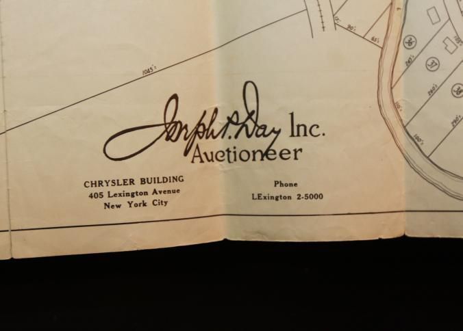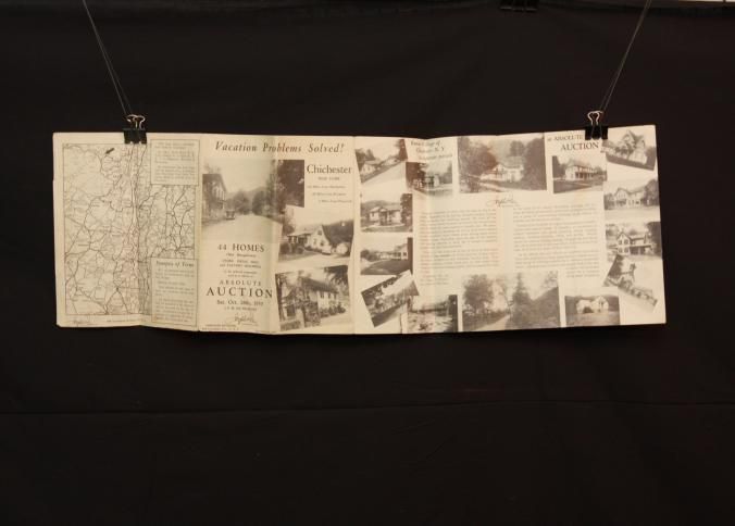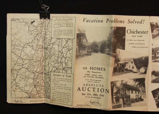 BROCHURE, MAP, REAL ESTATE, 1939, NY. "VACATION PROBLEMS SOLVED!" 44 HOMES AT ABSOLUTE AUCTION, JOSEPH DAY, AUCTIONEER. PHOTOS. 8 3/4" X 11" FOLDEDCreated By
