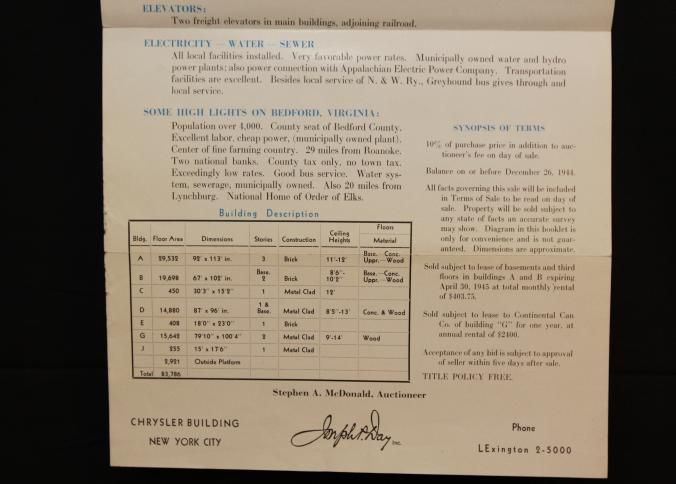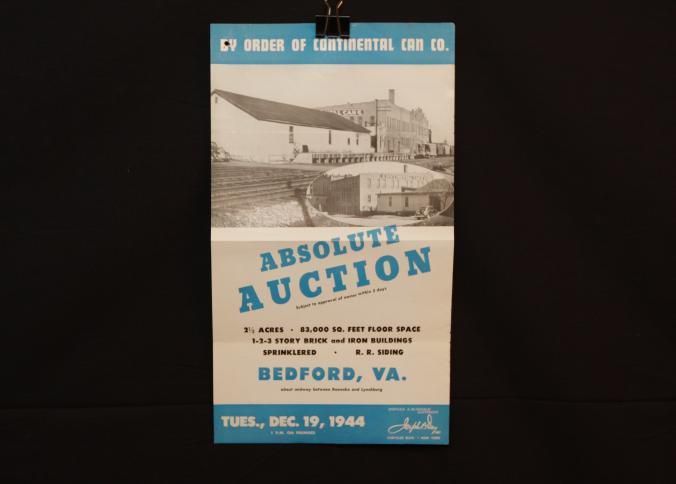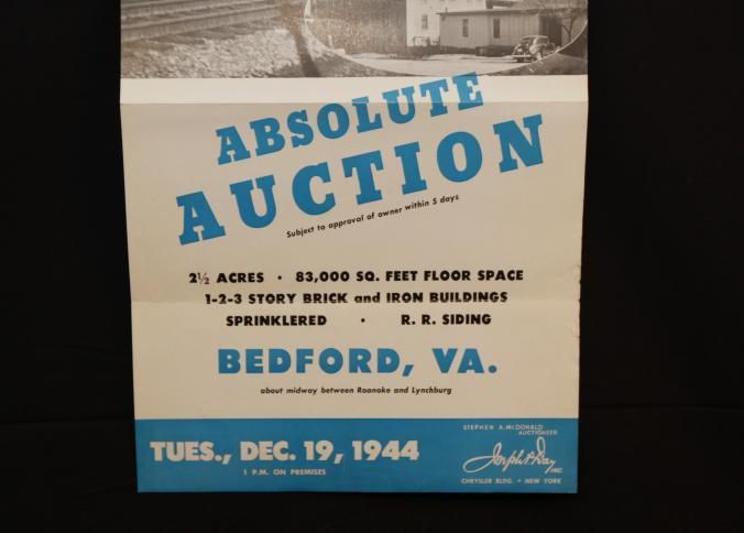 FLYER, 1944, REAL ESTATE, VA. BY ORDER OF CONTINENTAL CAN CO., ABSOLUTE AUCTION. JOSEPH DAY, AUCTIONEERS. MAP, TERMS, STEPHEN MCDONALD, AUCTIONEER. 9" X 15"Created By